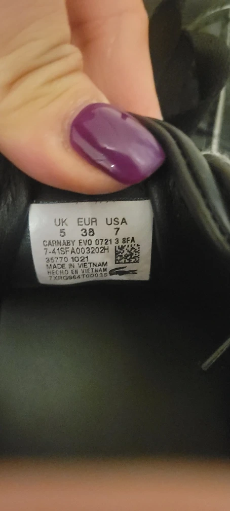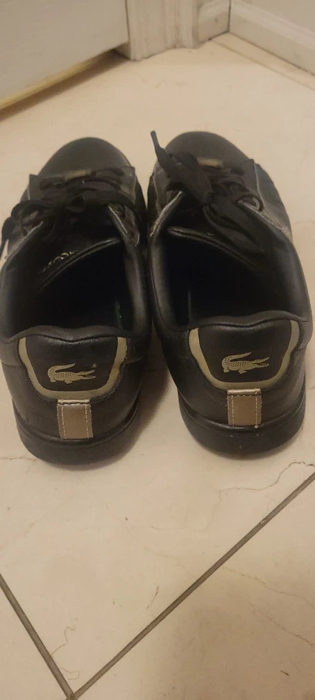Selling a pair of Lacoste Carnaby Evo 0721 sneakers in black. They're in good condition and are a US size 7. A classic and stylish choice for everyday wear!