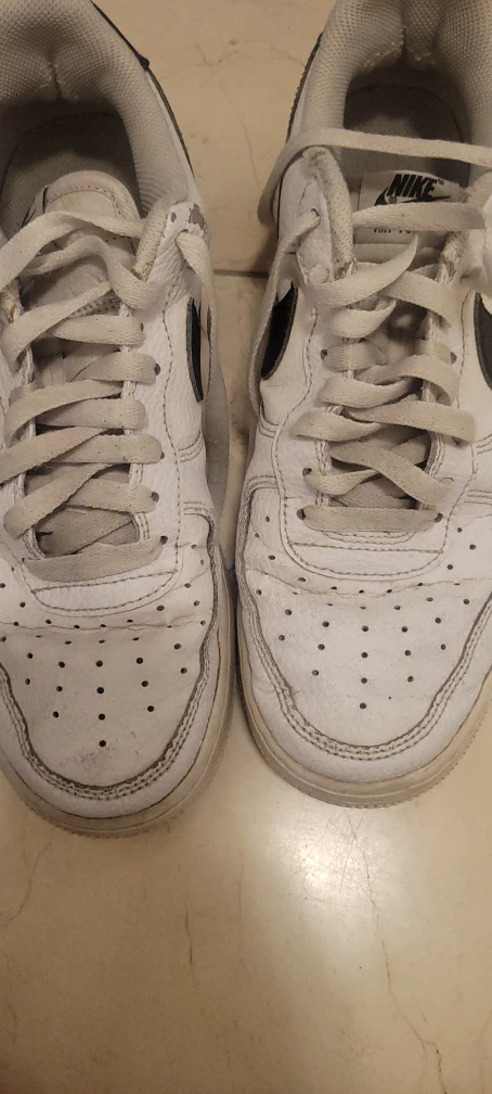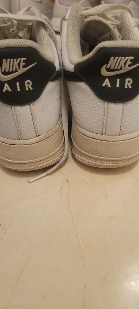 Selling a pair of Nike Air Force 1 Low sneakers in white with black accents! They're in used condition, as you can see in the photos, but still have lots of life left. Size is US 9.