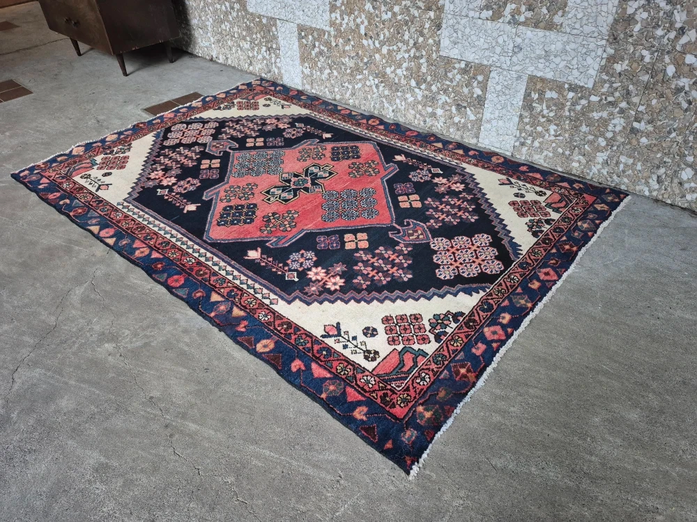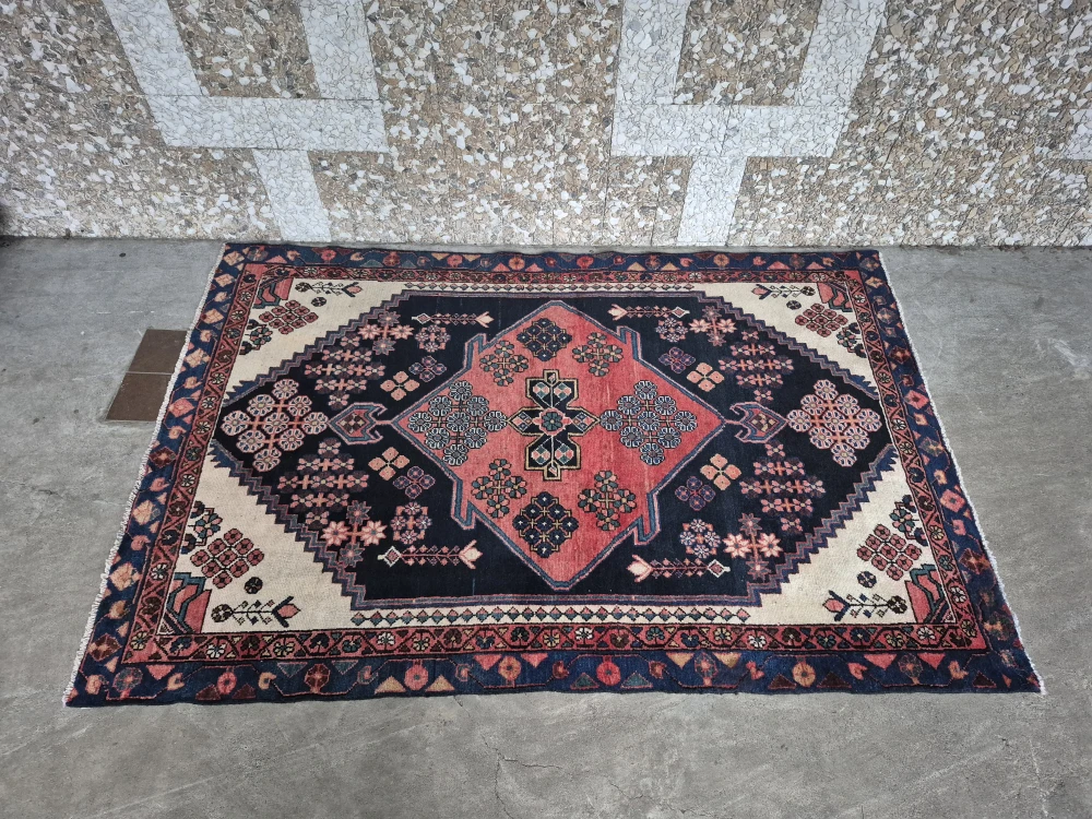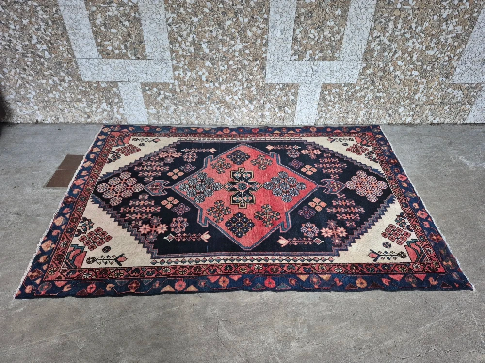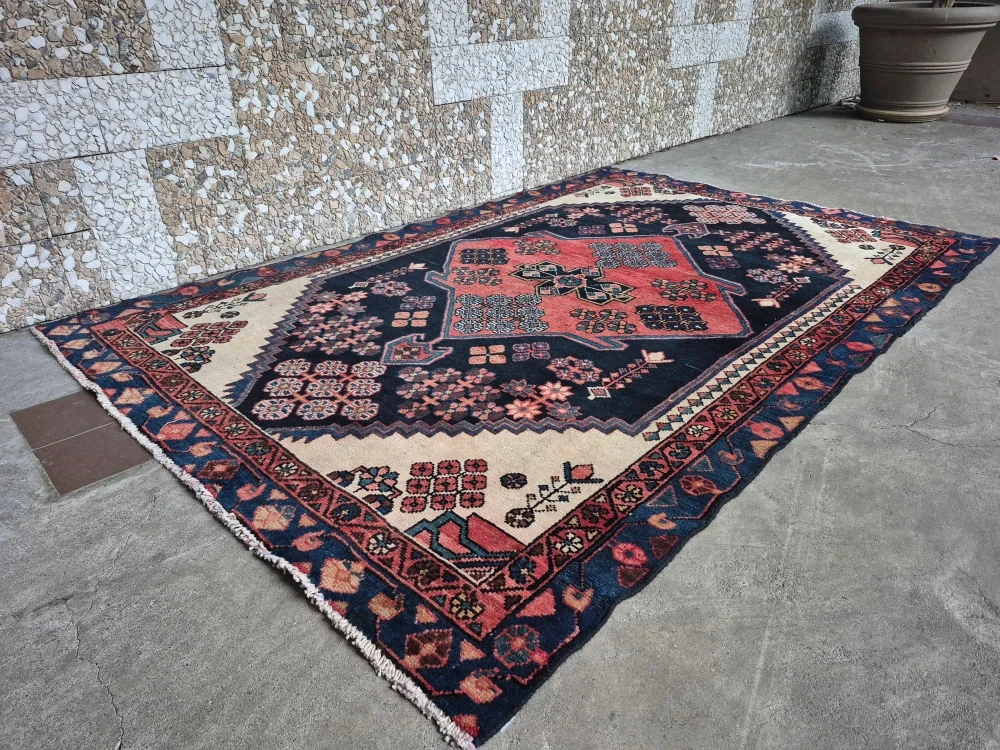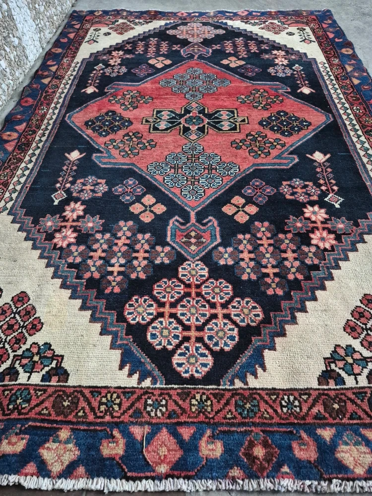 Tags: Rug, area rug, floor rug, carpet, vintage rug, decorative rug, woven rug, patterned rug, Persian style rug, boho rug, oriental rug, traditional rug, geometric rug, floral rug, medallion design, navy rug, terracotta rug, cream + navy rug, bohemian decor, vintage decor, classic home decor, heritage style, living room rug, bedroom rug, entryway rug, office decor, home interior, accent rug, statement rug, 78x53 rug, 6.5 x 4.4 ft rug, medium rug.
