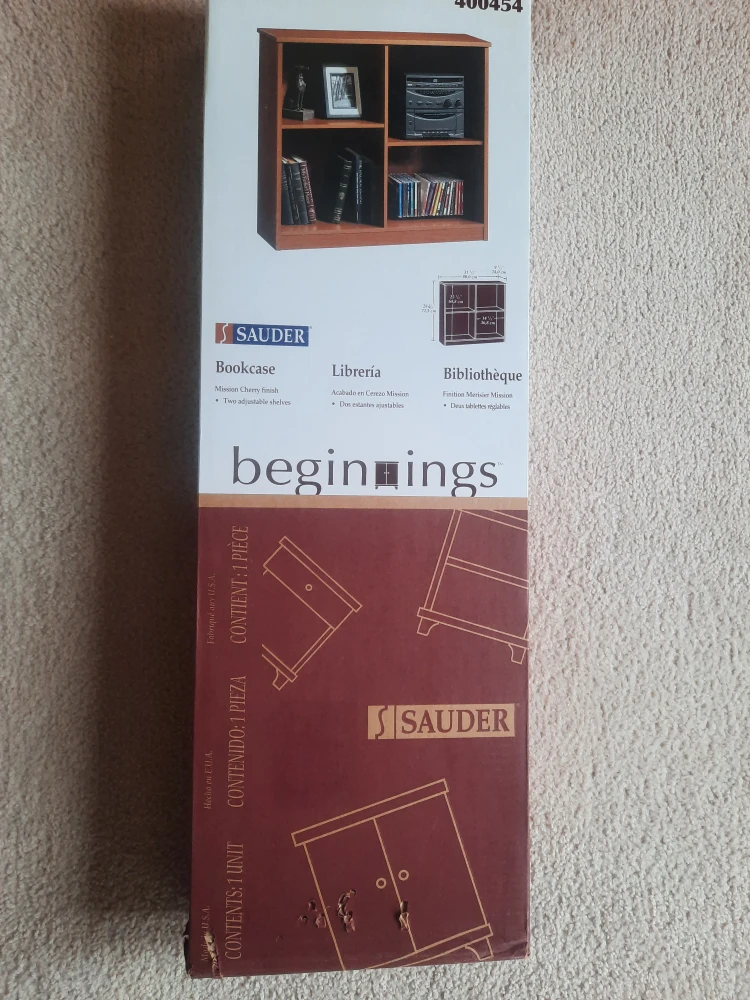 Selling a Sauder Beginnings Bookcase Cube in a Mission Cherry finish! This bookcase features two adjustable shelves. It's in its original box - Never Opened, ready for easy transporting and assembly in your home. Dimensions are 28.5" High, 31.5" wide, and 9.5" deep. Assembly Instructions are included in box! From a Clean Pet Free & Smoke Free Home DM for Pickup Near Steeles Ave W & Mavis Rd Moving Sale...I have other items to browse. Some Great Gift Ideas! Come create a bundle and let's make a deal! Thank-you for Checking.