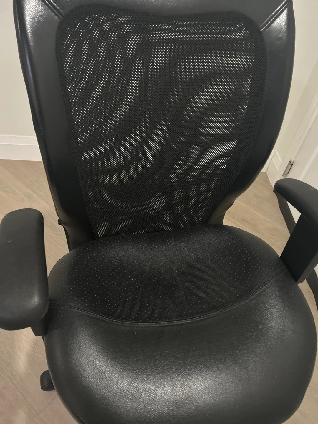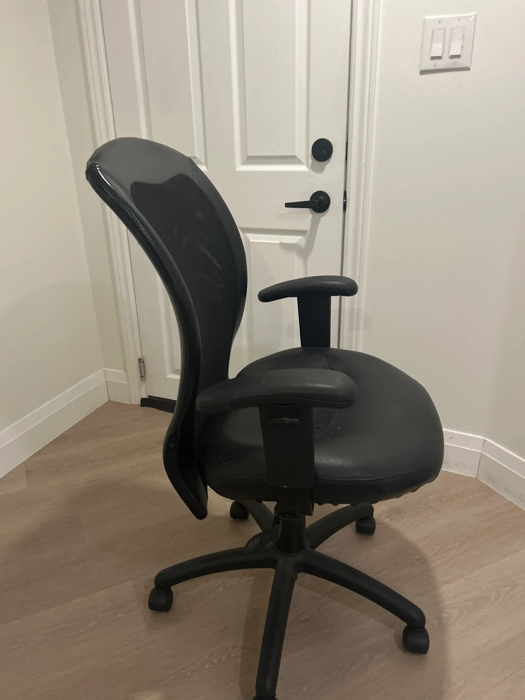 Selling a comfortable black office chair. It has a mesh back and a padded seat for extra comfort. The chair is in good condition and ready to use!