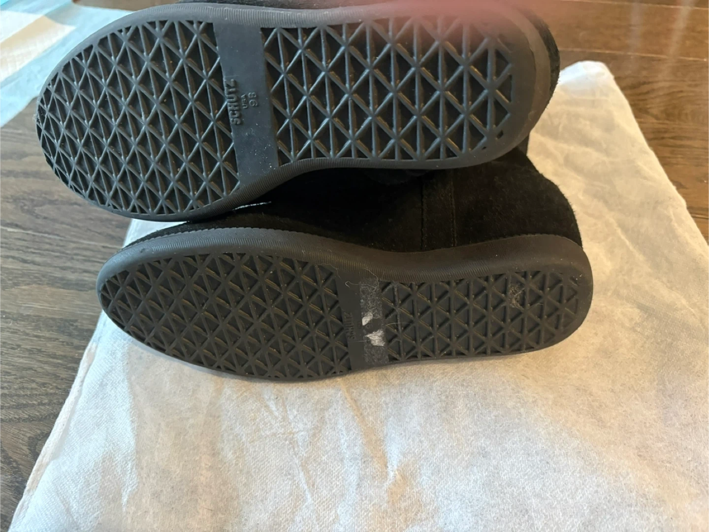Selling a pair of Schutz boots in black suede with fur trim. They're in great shape and super stylish! Wedge sole