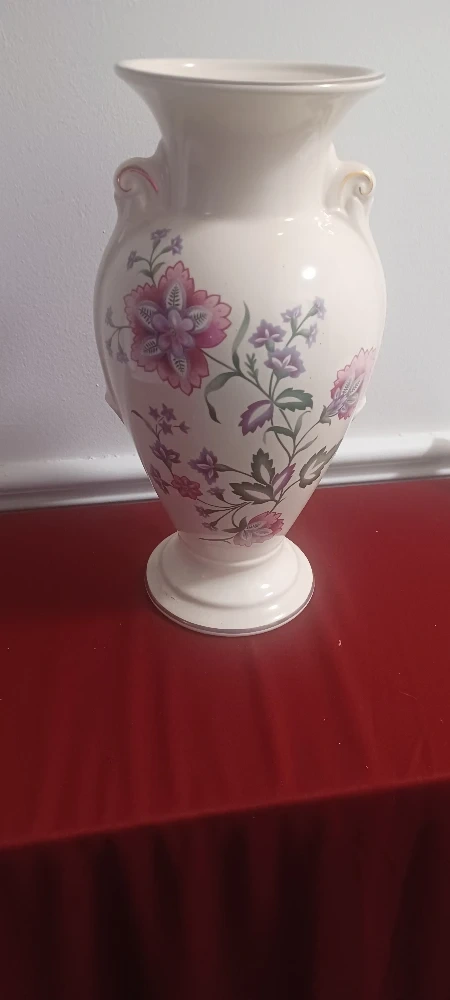 Selling this lovely vase with a floral design and handles! It's in great shape and would look beautiful with flowers or on its own as a decorative piece