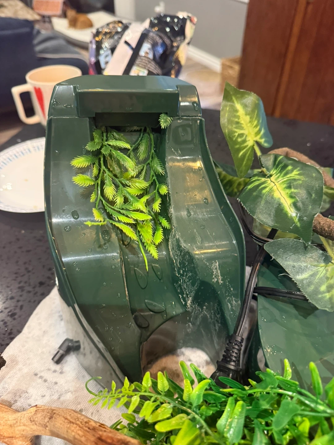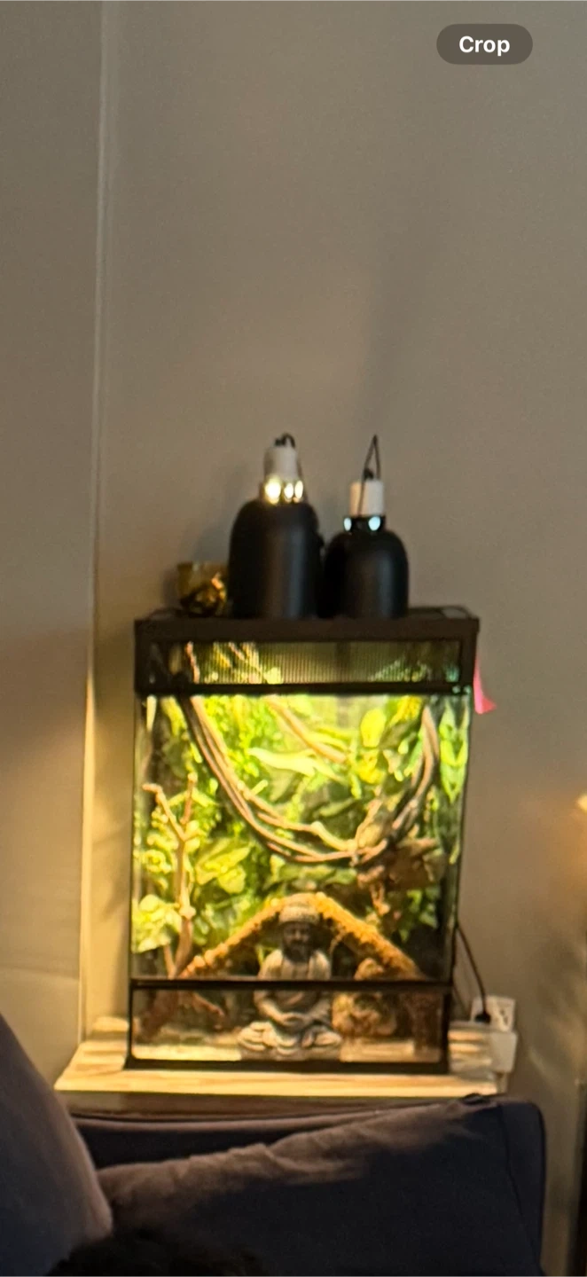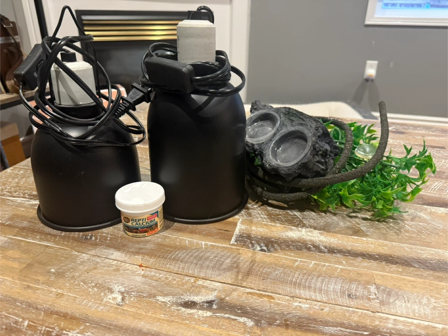 Selling an Exo Terra terrarium, perfect for reptiles or amphibians! It comes with some accessories, including two lamps, mister log, fountain and some artificial plants. Will need a sanitize before next resident, I did give it a good clean but can use more ! Bottom is still leak proof.