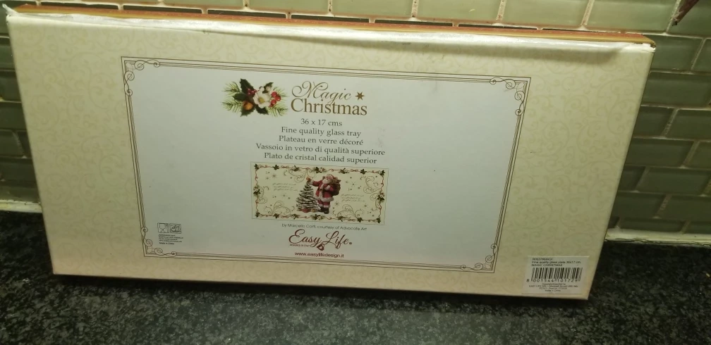Here's a beautiful Easy Life Magic Christmas glass tray, brand new and still in its original box! It's 36 x 17 cms, perfect for adding a festive touch to your home decor during the holidays
