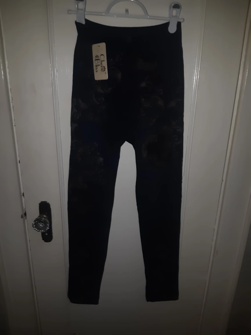 Selling a pair of Cherie Bliss leggings in black with a floral pattern. They're super comfy and in great condition. The tag shows a price of $15.50.