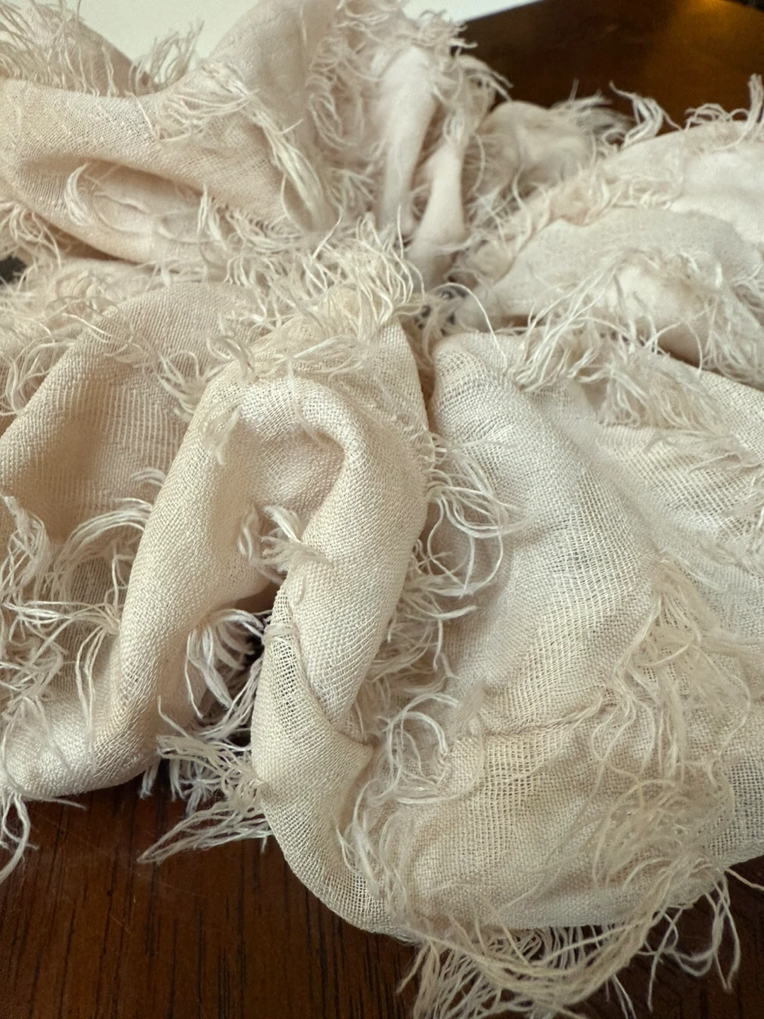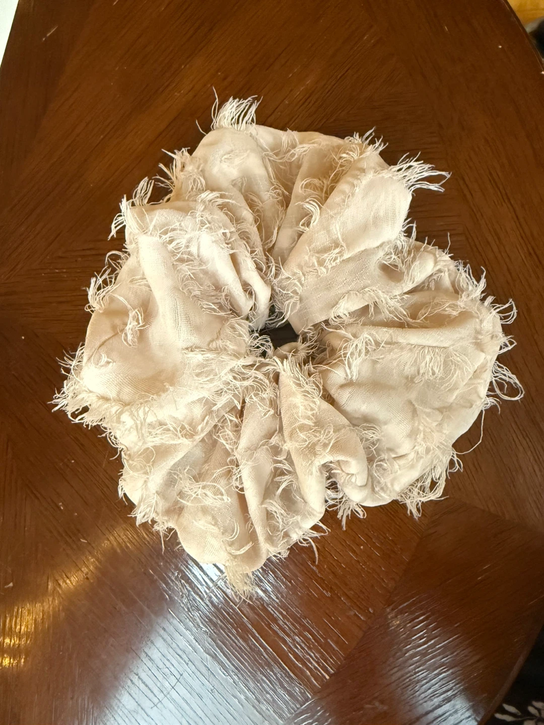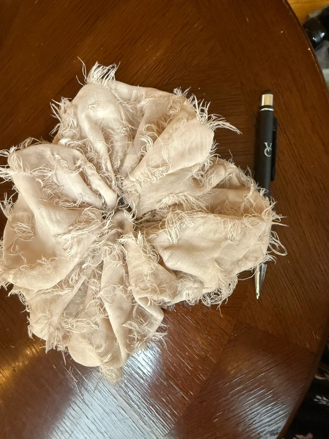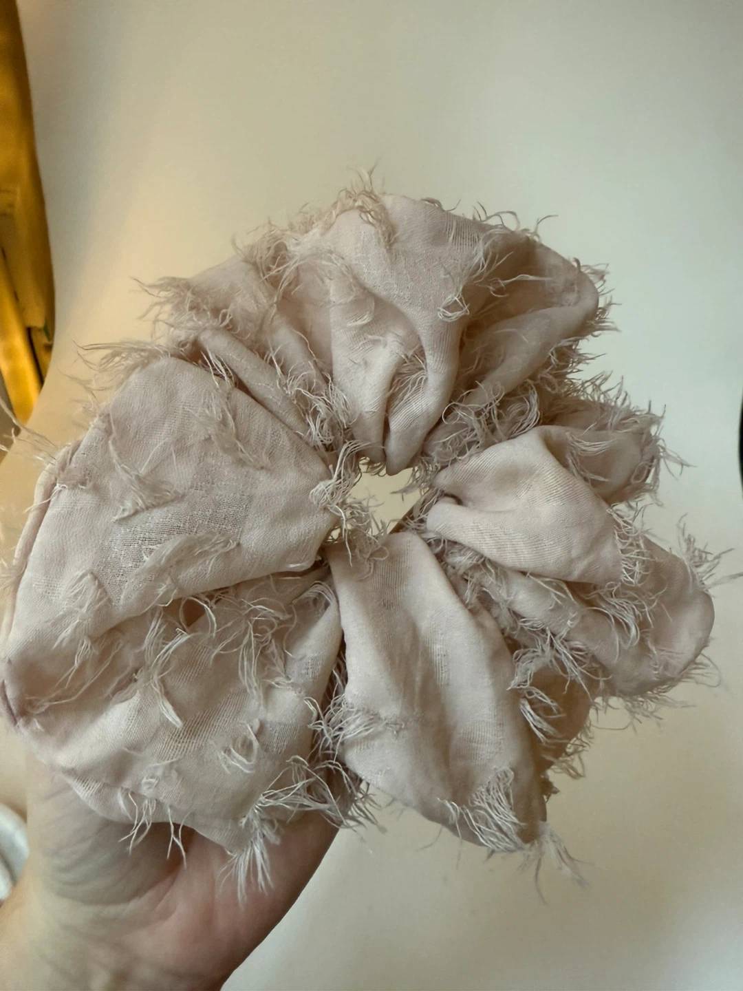 Extra large pale pink hair scrunchie, about 9” across without stretching