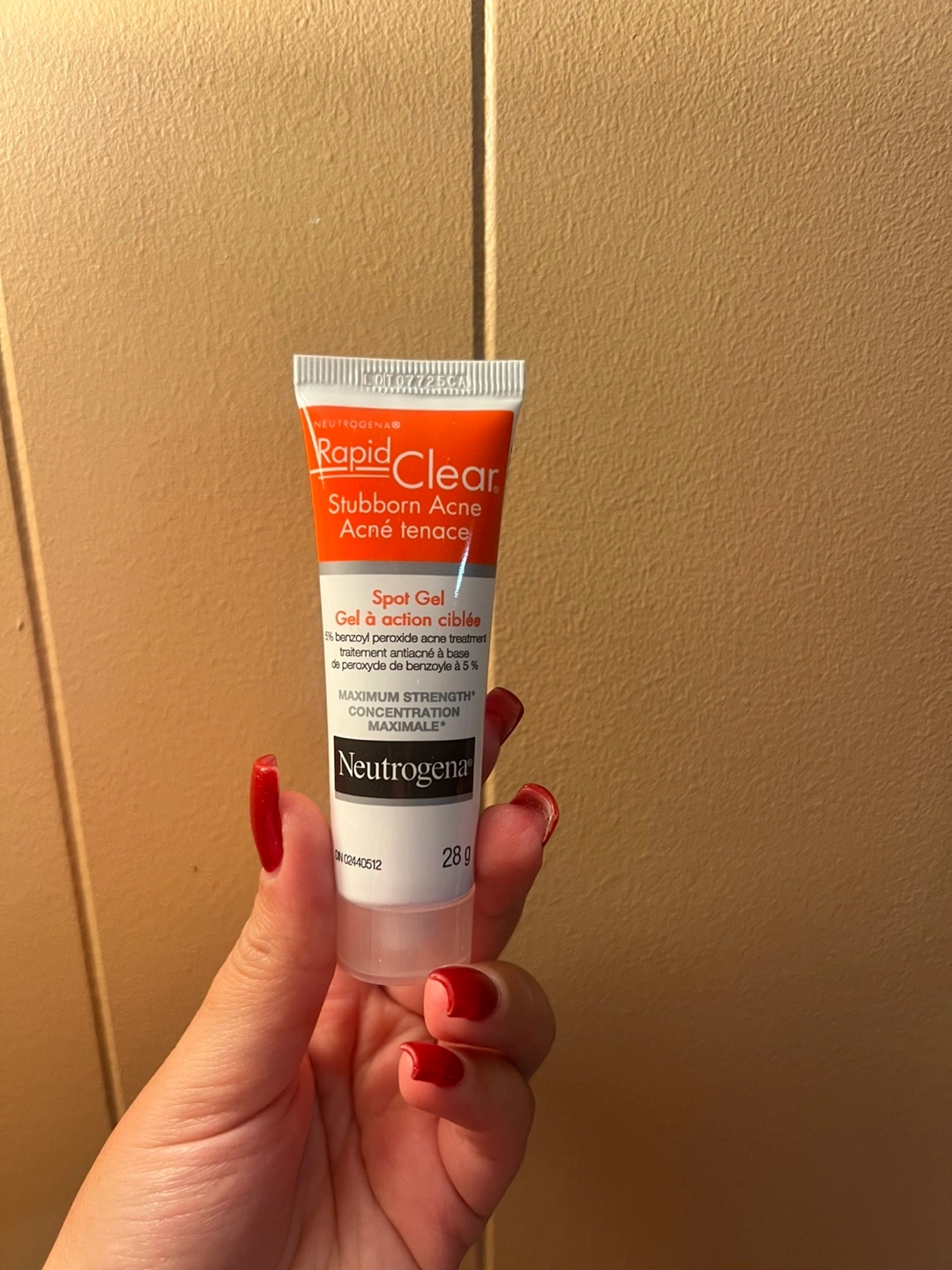 I'm selling a brand new Neutrogena Rapid Clear Stubborn Acne Spot Gel! It's a maximum strength treatment with 5% benzoyl peroxide to reduce the size, redness, and number of breakouts. Expiry date is February 2027. The tube contains 28g of product