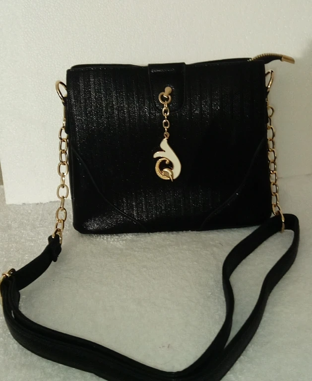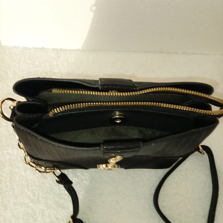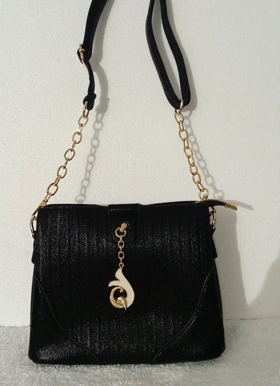 This is a stylish black shoulder bag with a gold chain detail. It's brand new in great condition and ready to add a touch of elegance to your outfit!