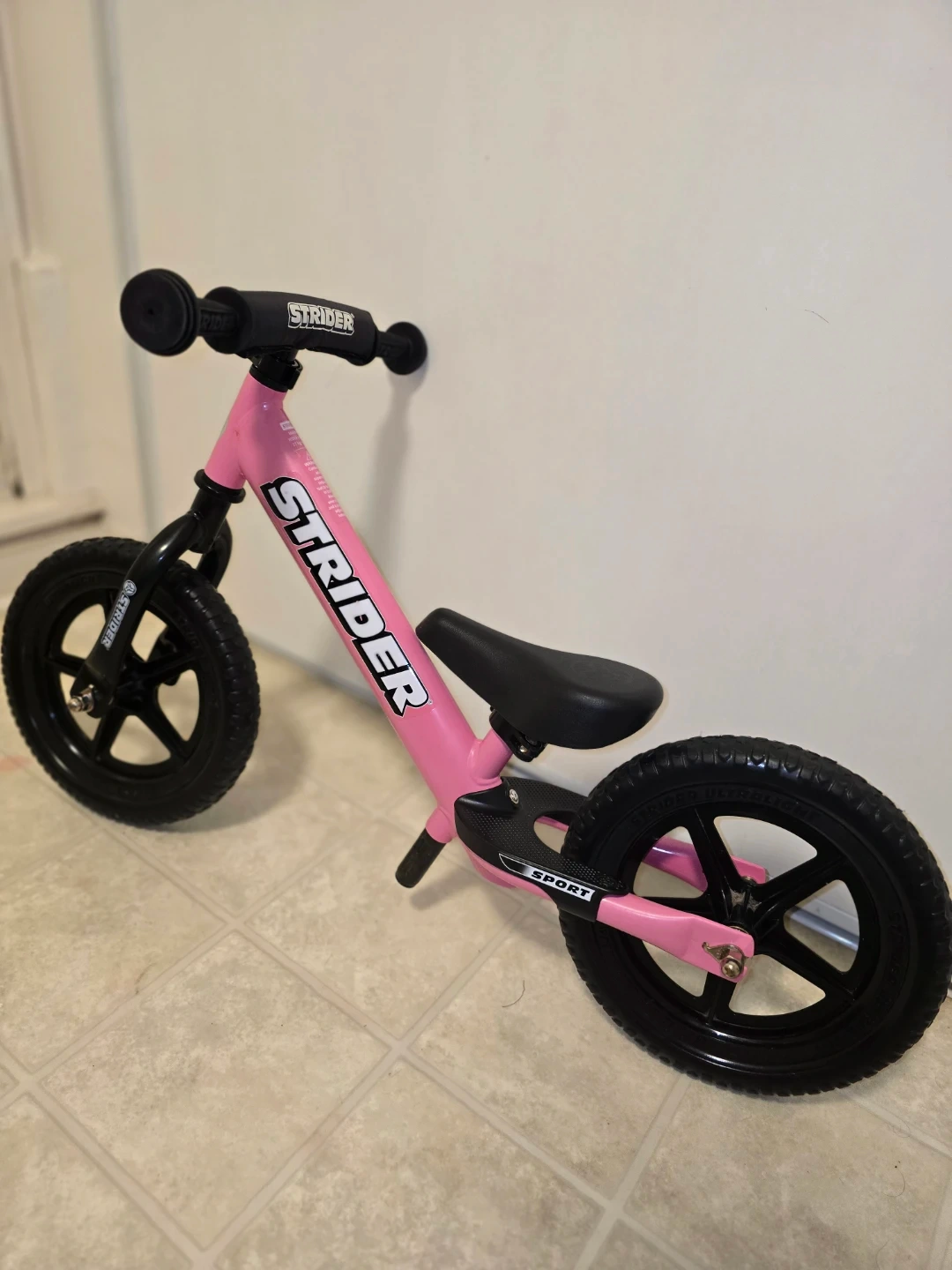 Selling a gently used pink Strider 12 balance bike! It's in great shape and perfect for helping your little one learn to balance. The manufacturing date on the bike is 2020 April 25.
