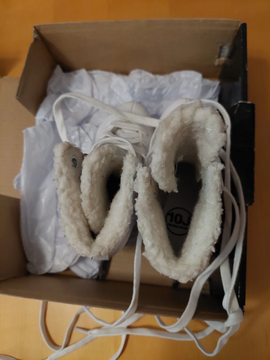 They are in like-new condition and come in their original box! These skates have very minimal wear. The blades are sharp and ready for the ice!