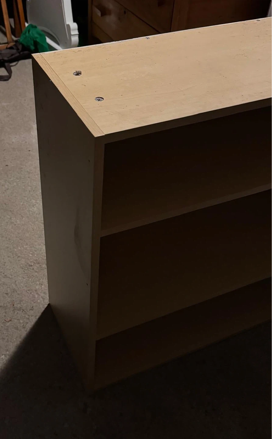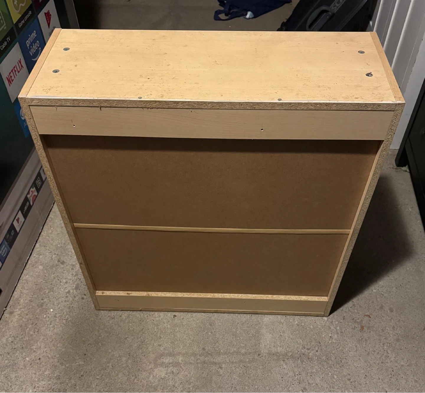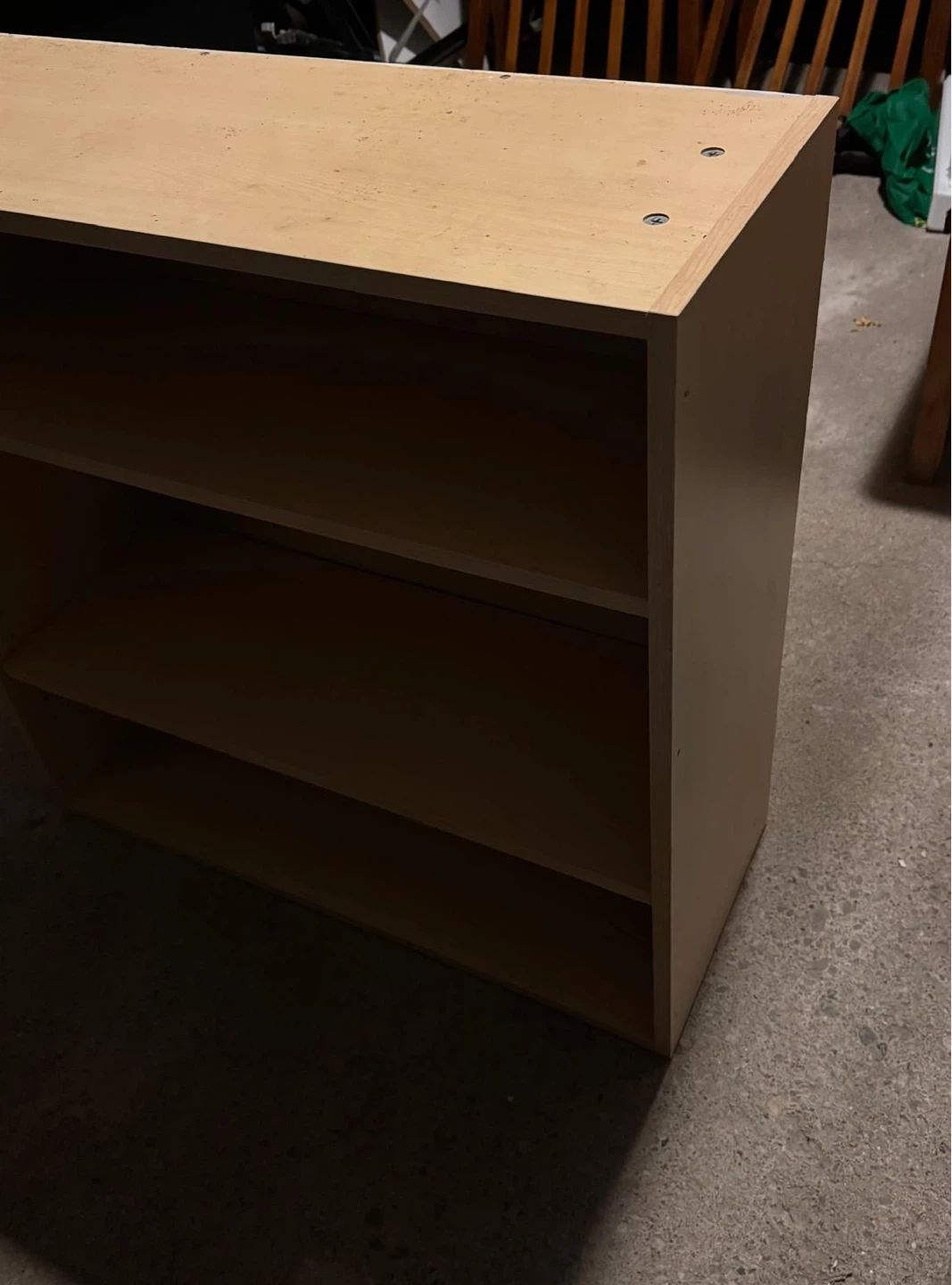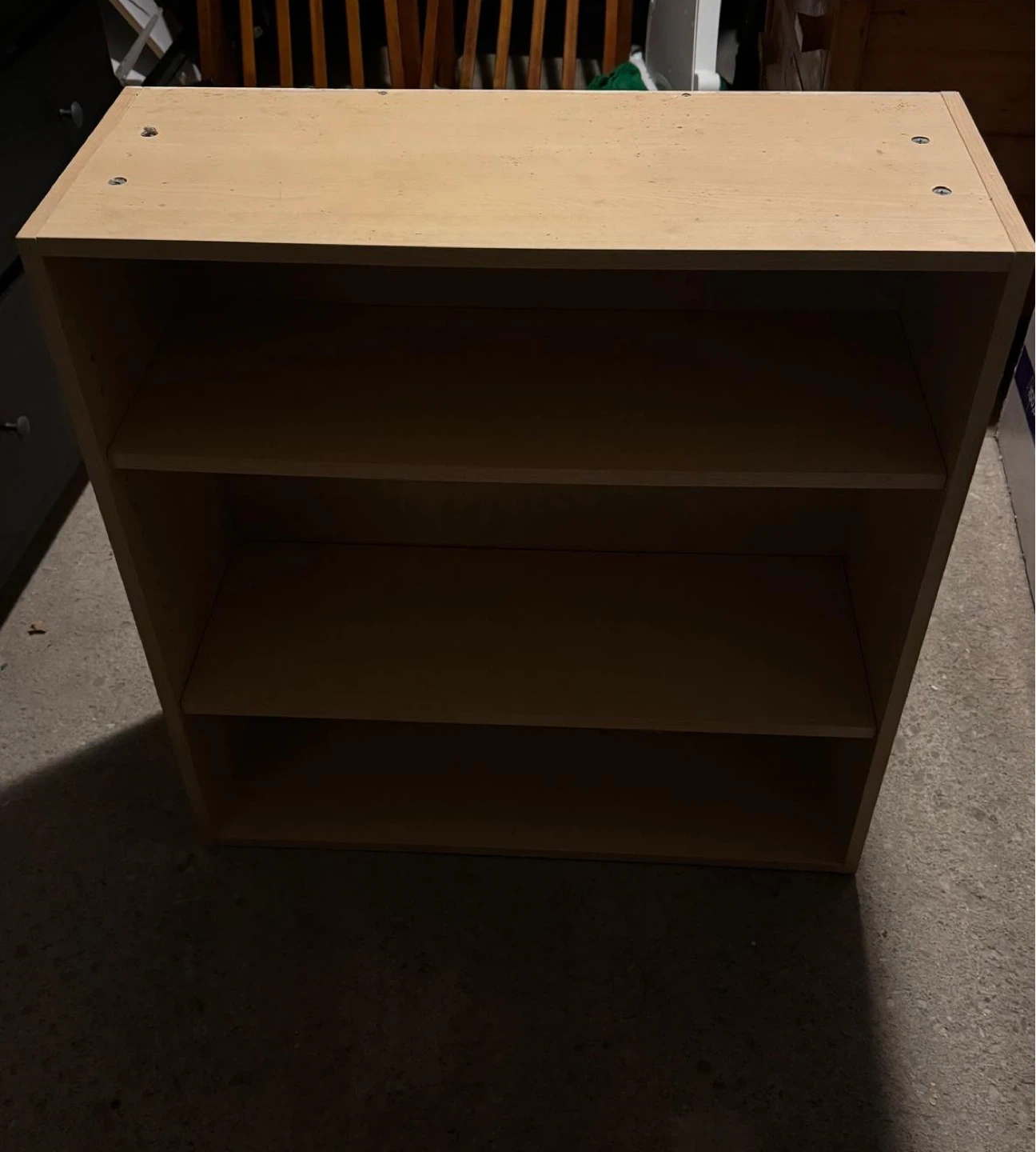 Here's a simple Beige Wooden shoes Cabinet with three shelves. It's perfect for storing shoes, displaying items like books, or organizing your space. It's in great condition and ready for a new home!