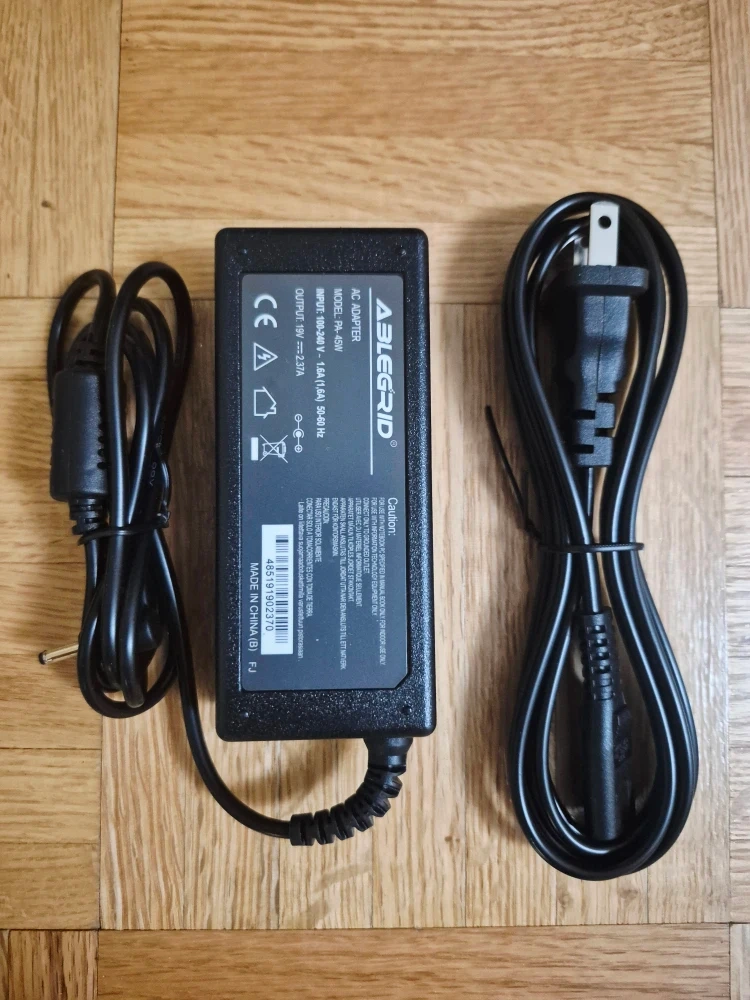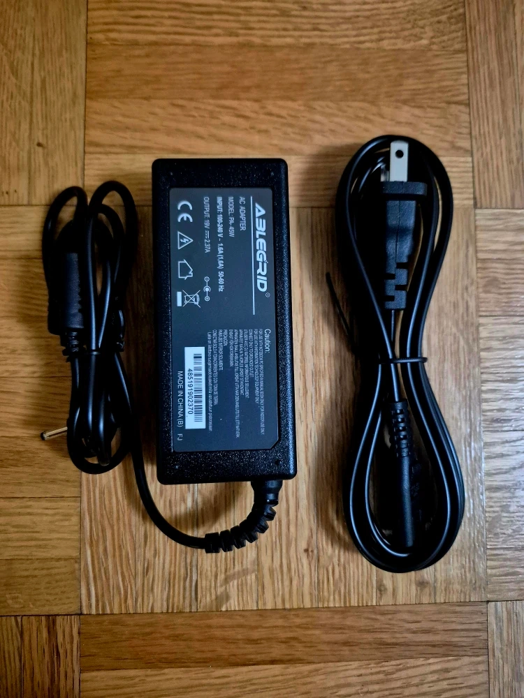 Selling an ABLEGRID AC adapter, model PA-45W. It accepts input of 100-240V ~ 1.6A (1.6A) 50-60Hz and outputs 19V == 2.37A. It's New condition and ready to use!