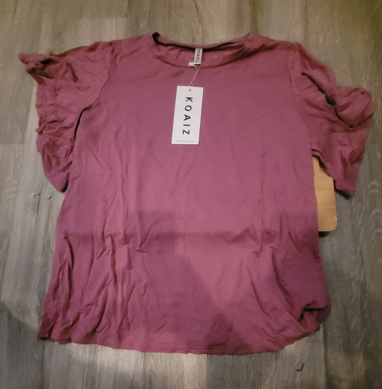 This is a brand new KOAIZ top with ruffle sleeves! It's a lovely mauve colour and still has the tags on it. Perfect for adding a bit of flair to your wardrobe!