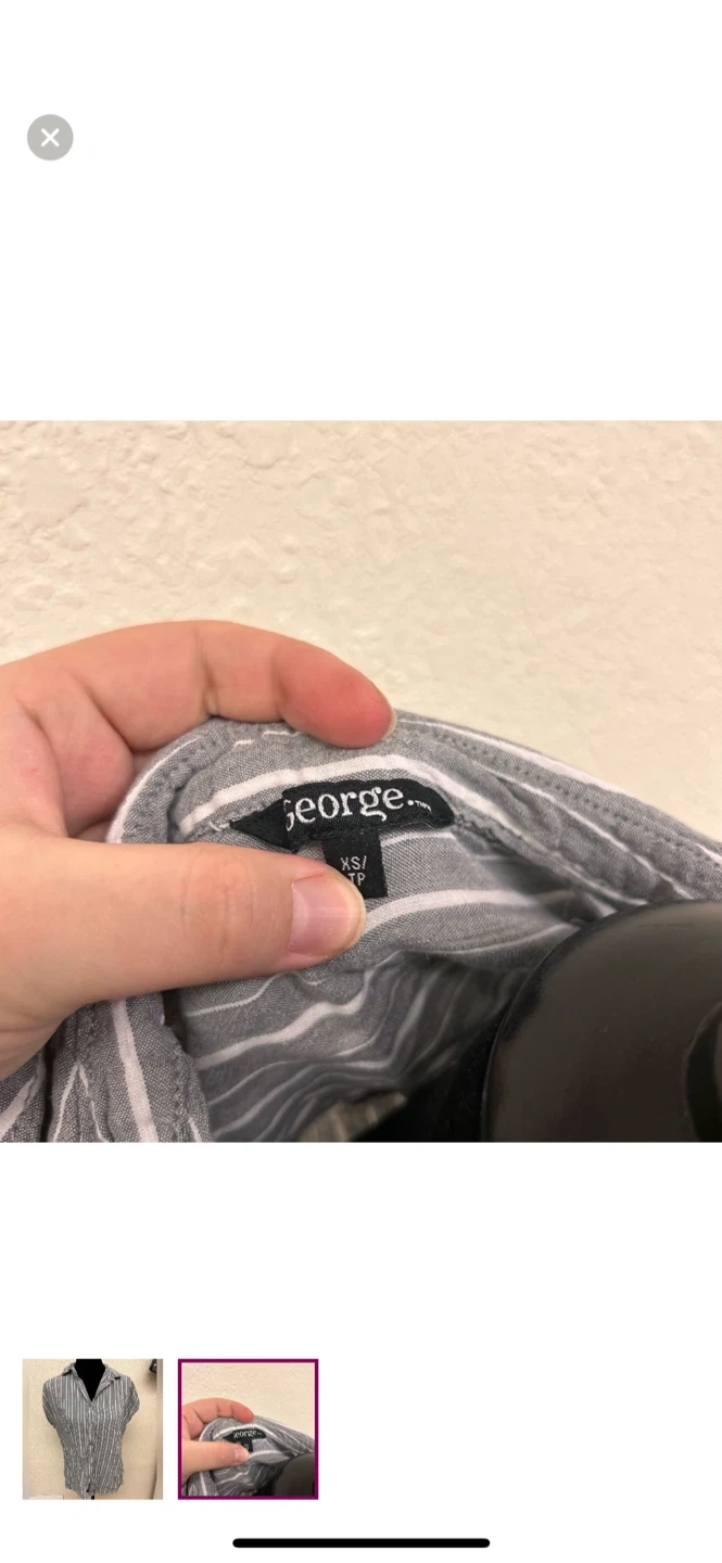 George brand. Short sleeve button up shirt. Grey & white striped. Size women’s xs. Brand new condition