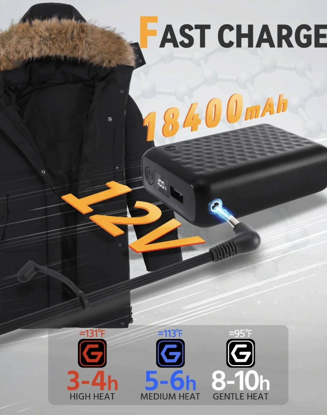 Stay warm this Graphene Heated Jacket in Pink! It features 6 heat zones and 360° wrapped warmth. With the 18400mAh battery, you can enjoy 3-4 hours of high heat, 5-6 hours of medium heat, or 8-10 hours of gentle heat
