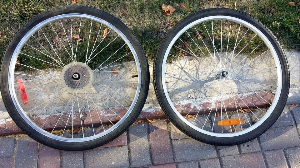 A set of duro wheels (26x2.0) like new, just mount on. Easy quick replacement and ride along. No headache of tire and tube change. $20 each, pickup at Markham Rd & Sheppard Ave. E. Scarborough. Only front wheel available now.