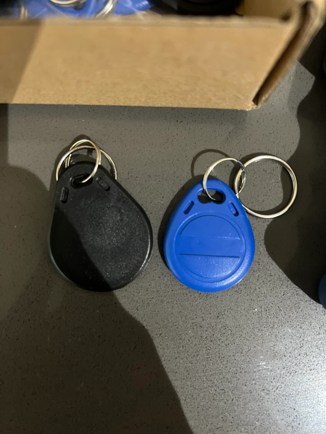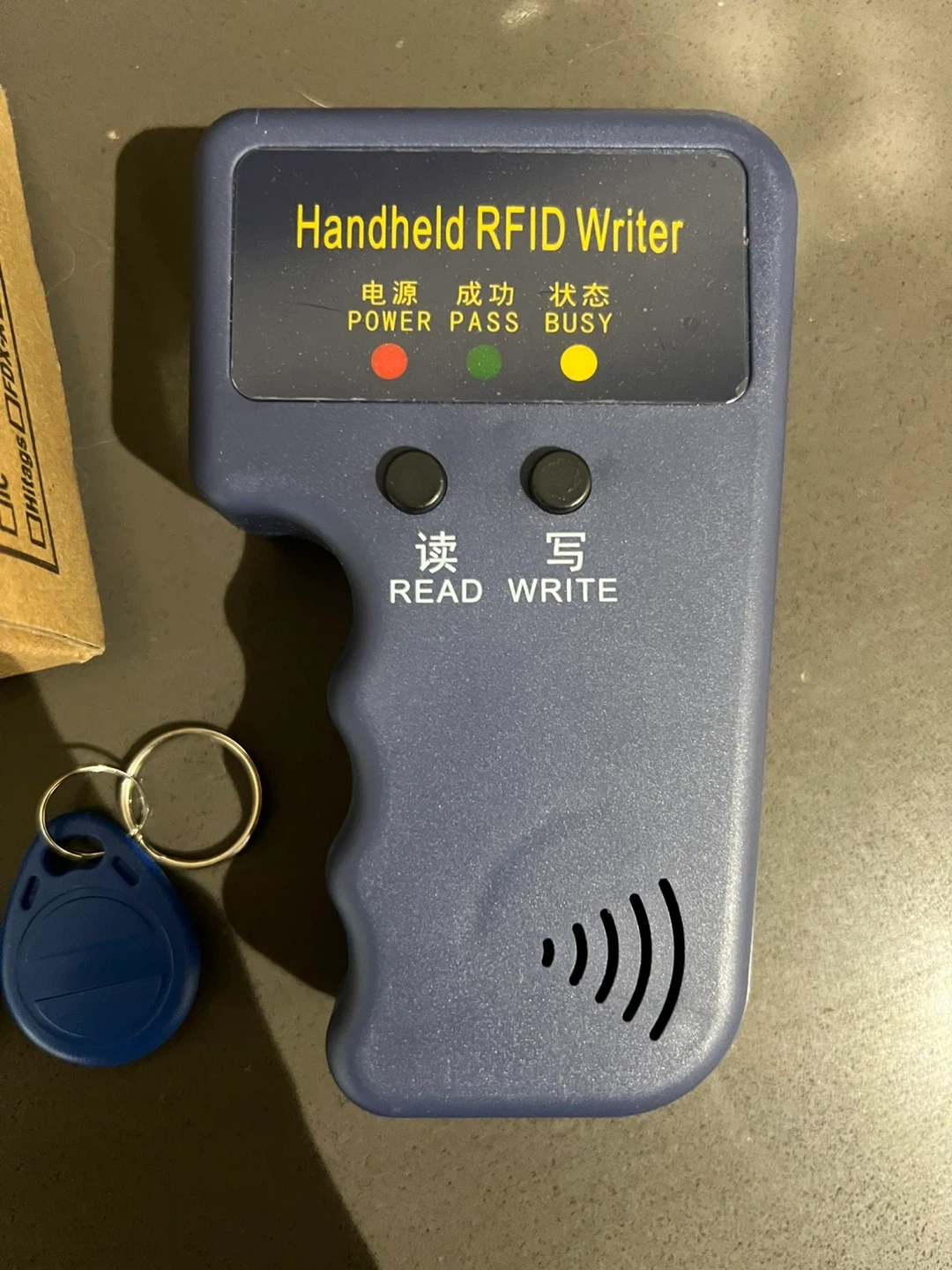 Selling a handheld RFID writer. It comes with a box of key fobs, both black and blue. Perfect for access control systems or other RFID applications!