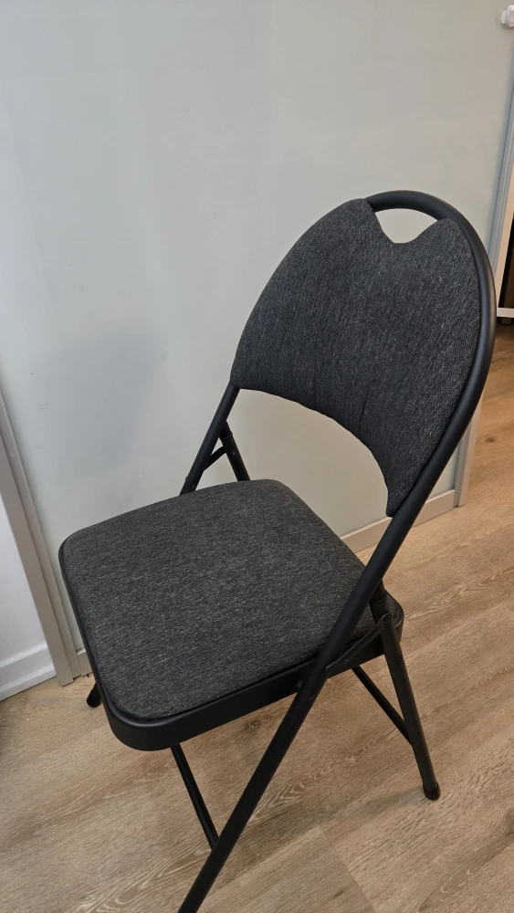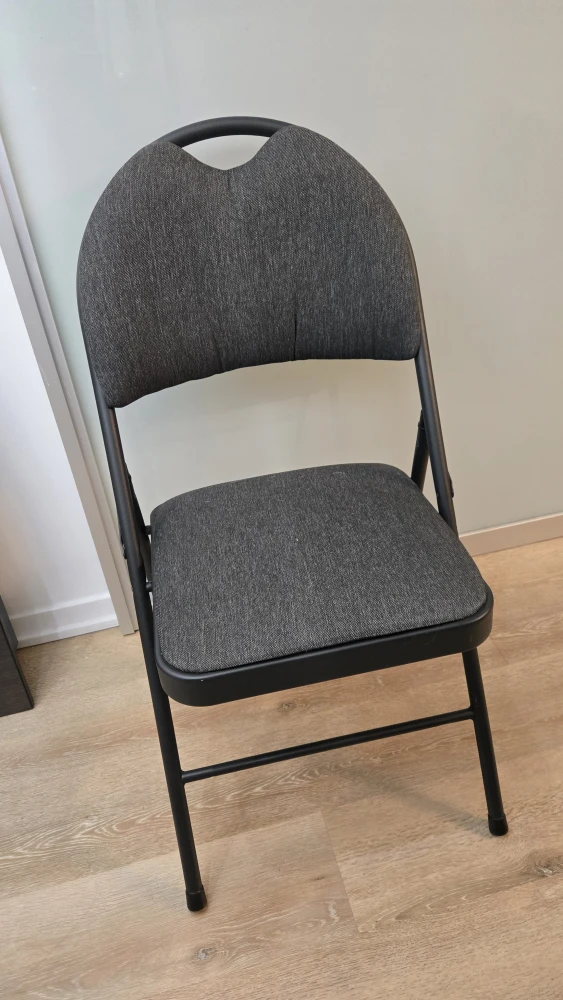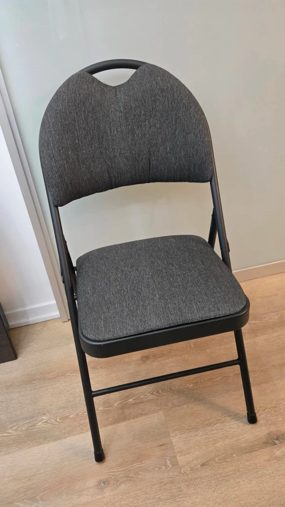 A comfy folding chair with a padded seat and back. It's great for extra seating when you have guests over or for small spaces where you need to save room. The chair is in good condition and ready to use! (4 available)