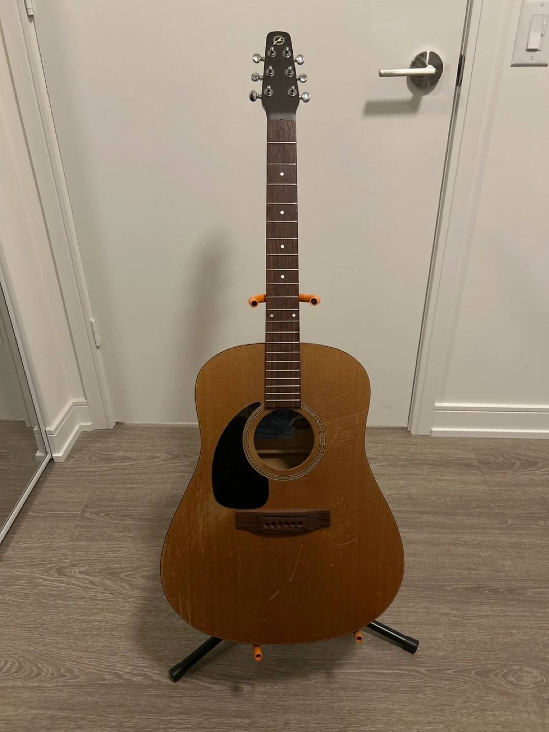 Selling a Seagull S6 Series acoustic guitar. It's in good condition and ready to play! Handmade in the Village of LaPatrie, Quebec. The guitar has no strings and scratches on the body - hence the lower price.