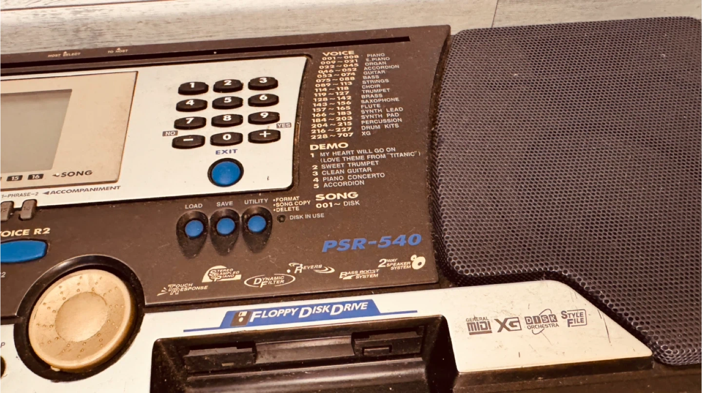 Selling a Yamaha PSR-540 keyboard. It's in good working condition and ready for a new musician to enjoy. It features a variety of styles and voices, including piano, e. piano, accordion, trumpet, and drums. It also has a floppy disk drive for saving songs and registrations. Perfect for on beginners or experienced players alike! With is about 80cm and depth 35cm.