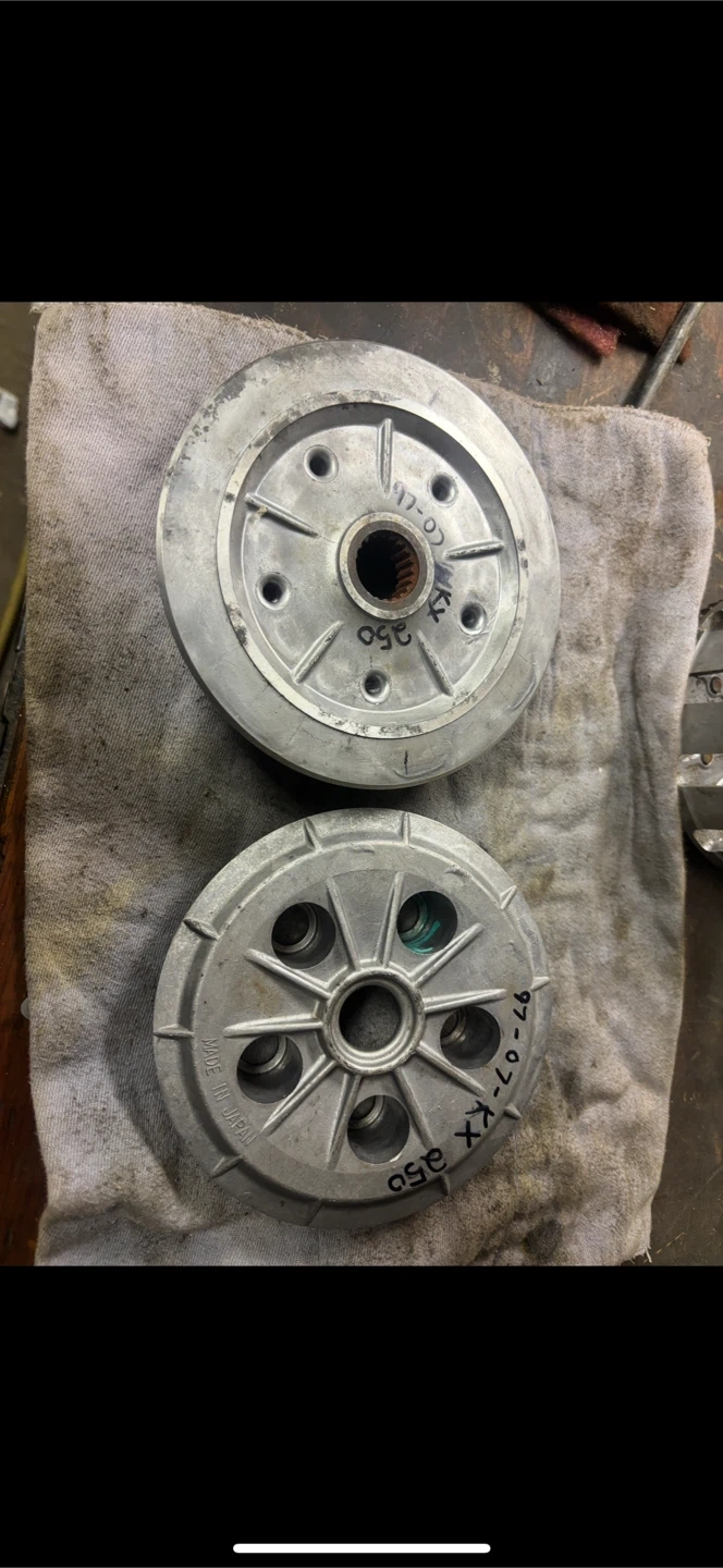 1997 - 2007 Kawasaki KX 250, Clutch hub and pressure plate for sale. Will fit other Kawasaki dirt bikes and models. I do not have the clutch basket . Used assembly minimal wear look at photos. $120