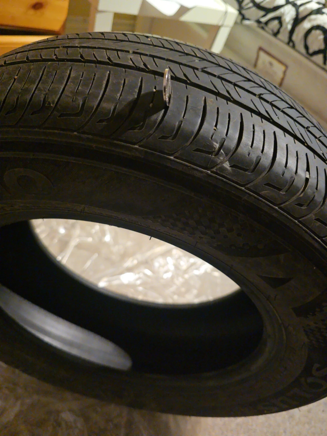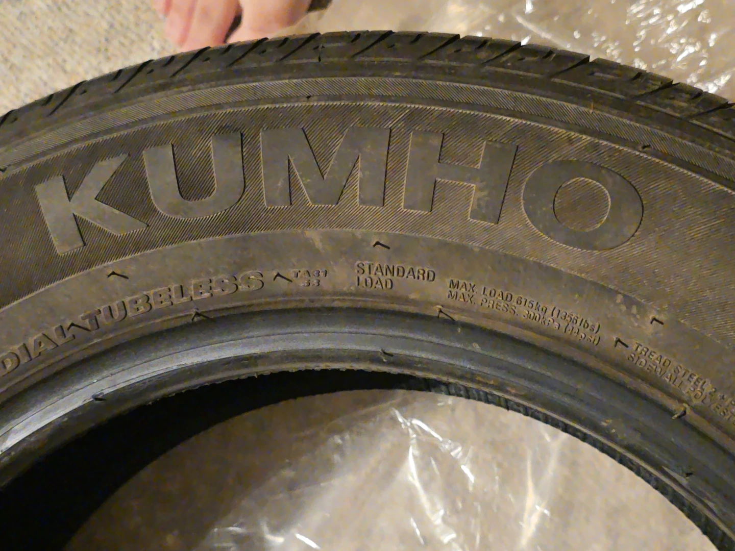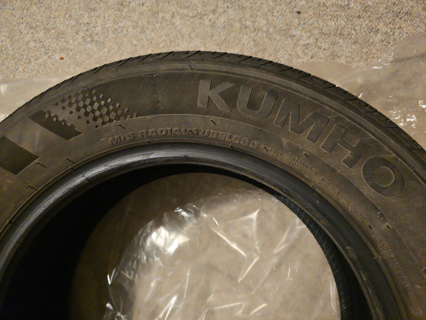 Only couple of months driven on this tires so it got dirty. Its kumho almost brand new came with my car I had gotten from a dealership with that car and these ones I believe are good for all weather amazing treads on tires feel it could work on winters as well. It was for my older car which got crashed by someone. Its wrapped up nicely. Its for hyundai elantra essential 2022 model. Tires for my car above. I had new winter tires yet i lost them when my car got Total loss in insurance.