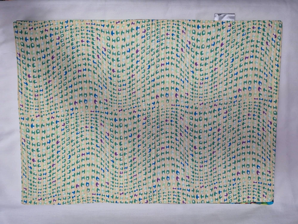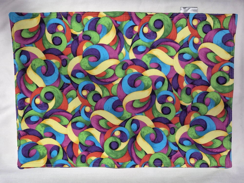 Here's a colourful placemat that will add a pop to your dining table! It features a vibrant ribbon swirl pattern on one side and a dotted pattern on the other. Perfect for everyday use or special occasions