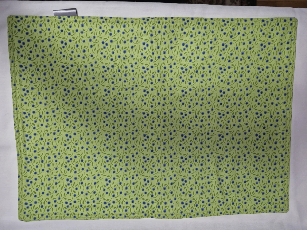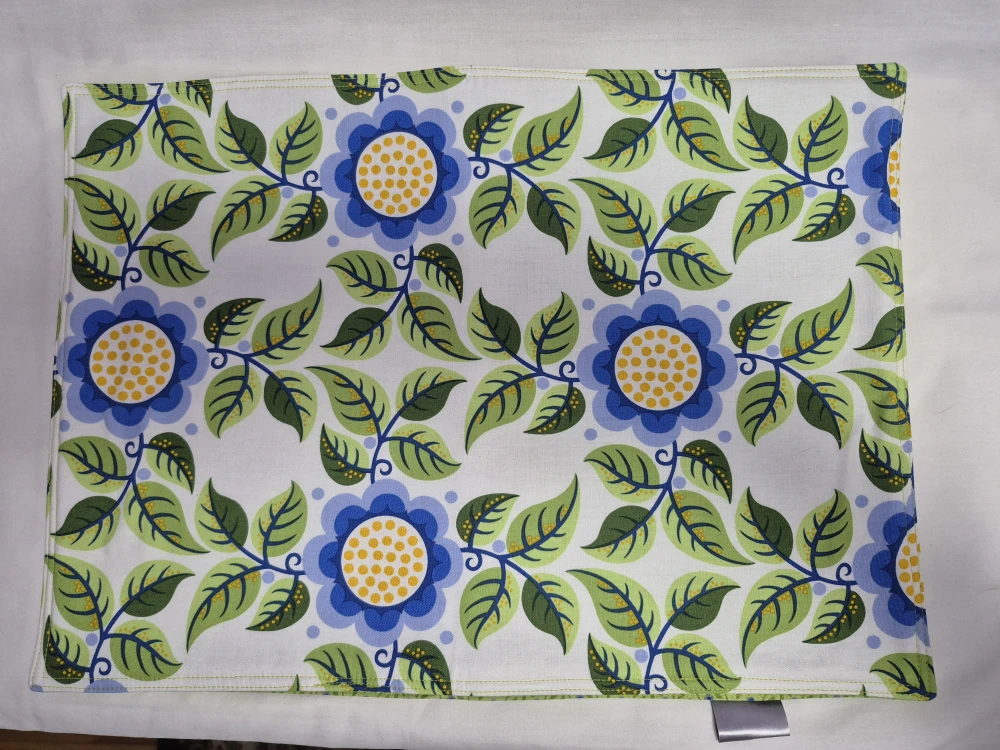 Robert Kaufman " Laurel" garden floral print on 100% cotton place mats. Reversible with different print on other side. Reverse side is a charming blueberry and leaf print on a green background. 1st print