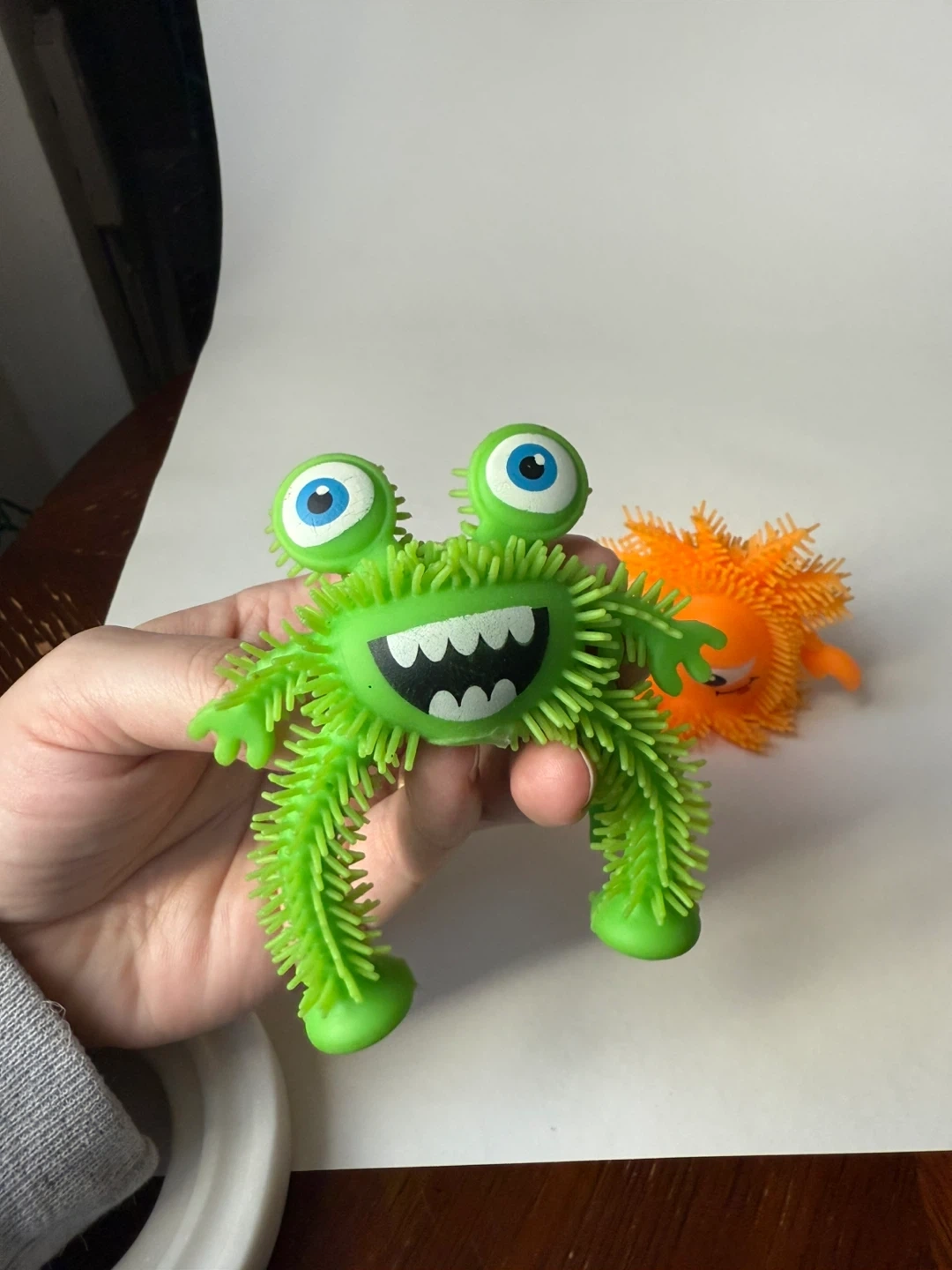 Neon green 3-legged googly-eyed alien - 3.5”