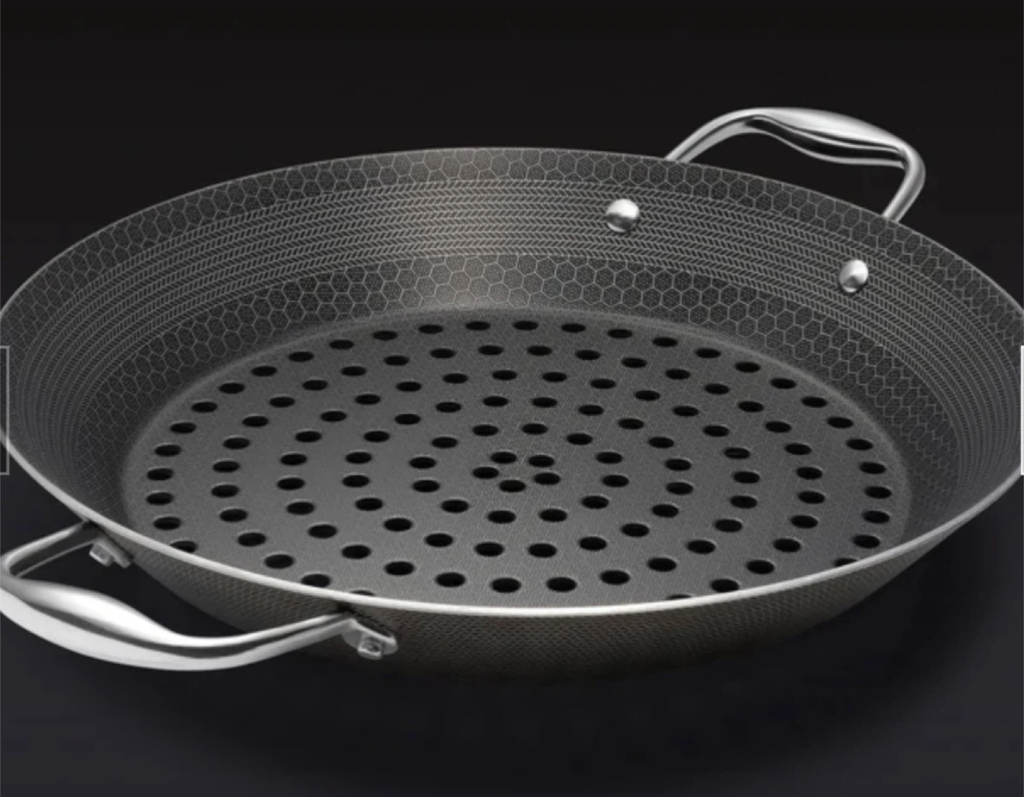 Brand new, never used. Get bold grill marks and smoky flavor—without the mess. Perfect perforations keep veggies and seafood in place while cooking evenly.
