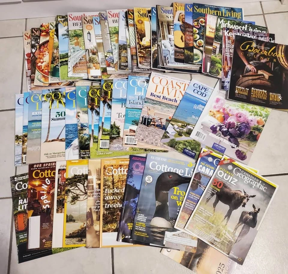 People, US, Hello, Oprah, Southern Living, Costal living, Vanity Fair, Reno Decor, Food Network, Home and Garden HGTV, Italia, Travel Leisure, Women, Toronto Life, Canada Living, Chatelaine, Good Housekeeping, House & Home, Town and County.. to name a few. Which ones are you interested in?