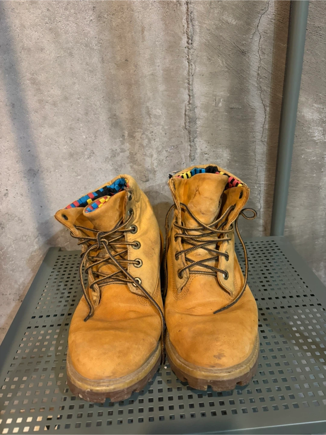 Selling a pair of Timberland boots. They show some signs of wear, as you can see in the photos, but still have lots of life left! The size isn't marked, so please check the photos carefully to see if they'll fit you.