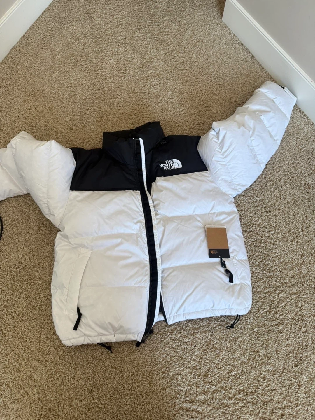 Here's a The North Face Nuptse puffer jacket in a stylish white colour. It's in brand new condition.