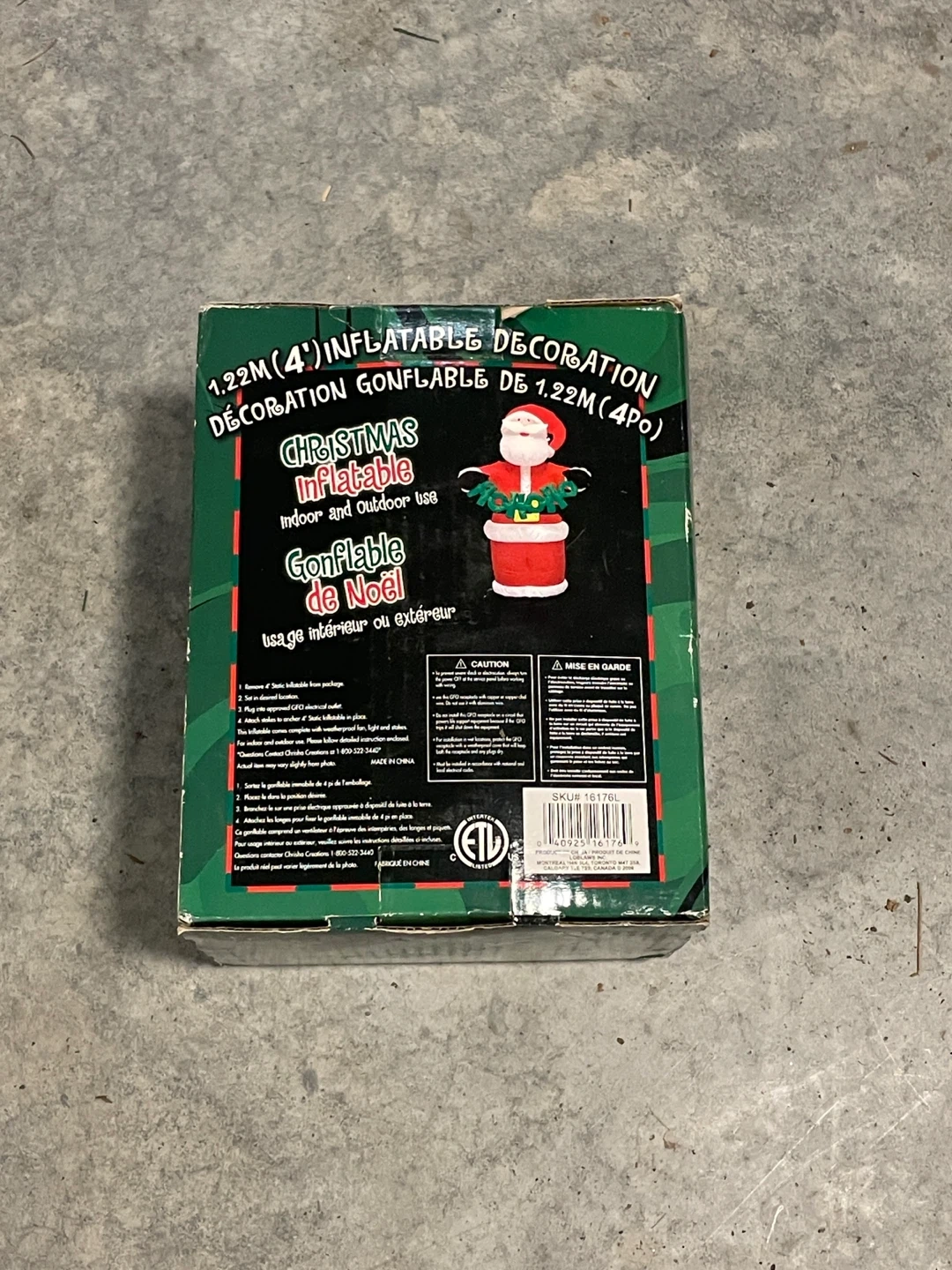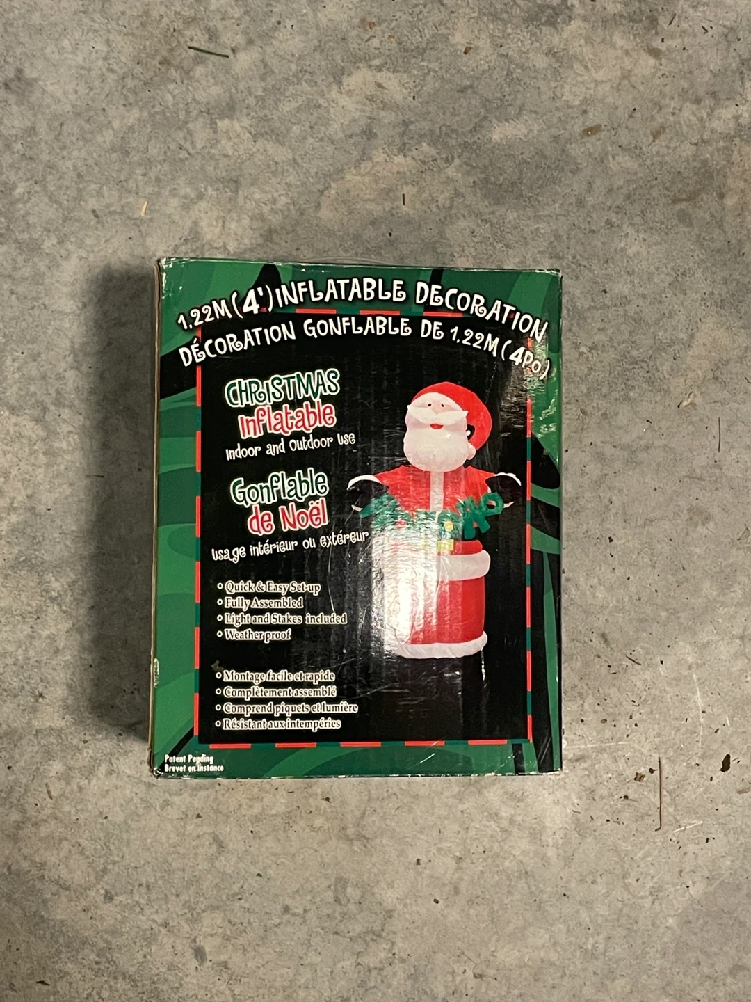 Get ready for the holidays with this fun 1.22M (4') inflatable Christmas decoration! Perfect for indoor or outdoor use, this inflatable Santa is quick and easy to set up and comes with light and stakes included. It's also weatherproof, so you don't have to worry about the elements. The box is included!