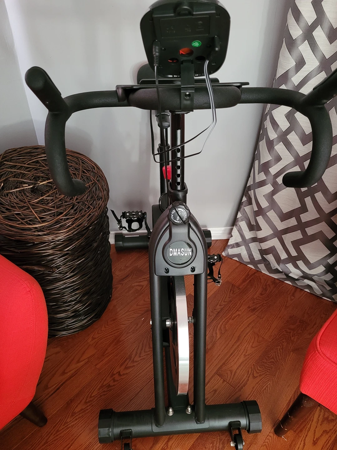 Selling this "like new" exercise spin bike. Only used a few times. Selling because the incorrect type of stationary bike was purchased. There is even a holder for a phone or tablet. And the overall bike does not take up much space. Adjustable seat too!