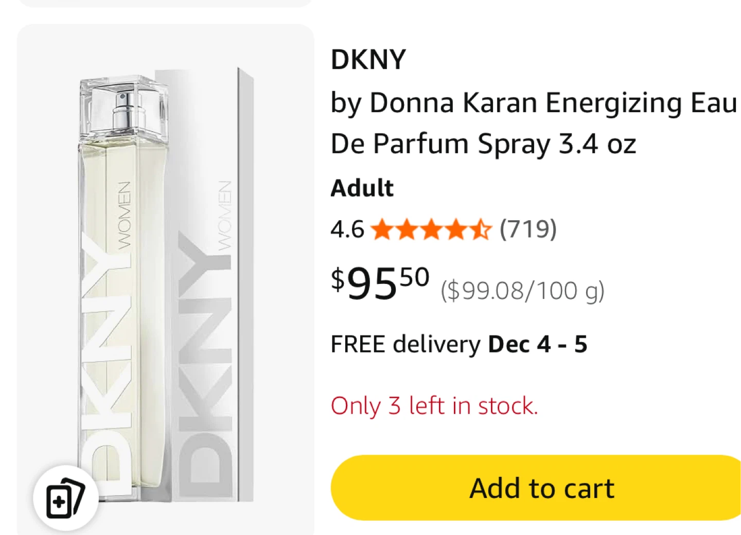Selling DKNY by Donna Karan Energizing Eau De Parfum Spray. The size is 3.4 oz. Retails for $95.50