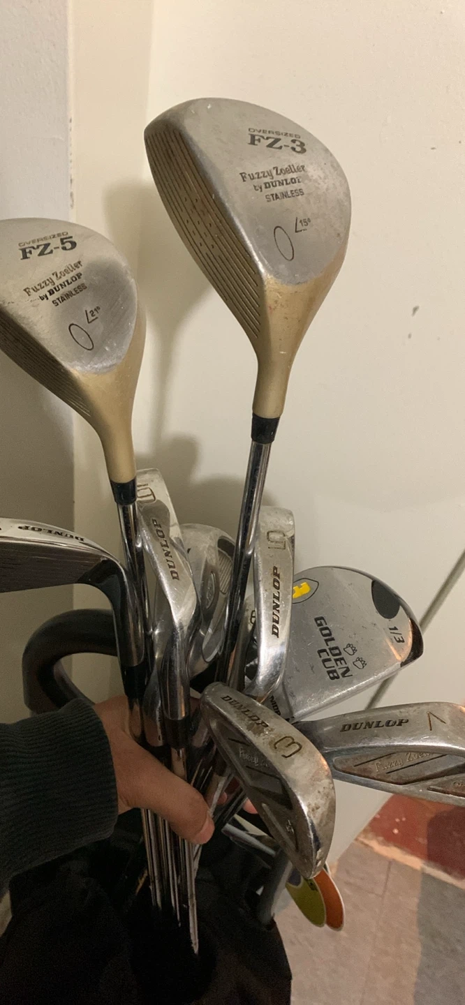 Selling a set of Dunlop golf clubs, including Fuzzy Zoeller FZ-5 and FZ-3 models. They're oversized and made of stainless steel. Great for anyone looking to upgrade their golf game!