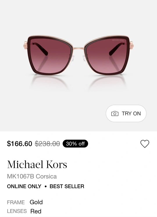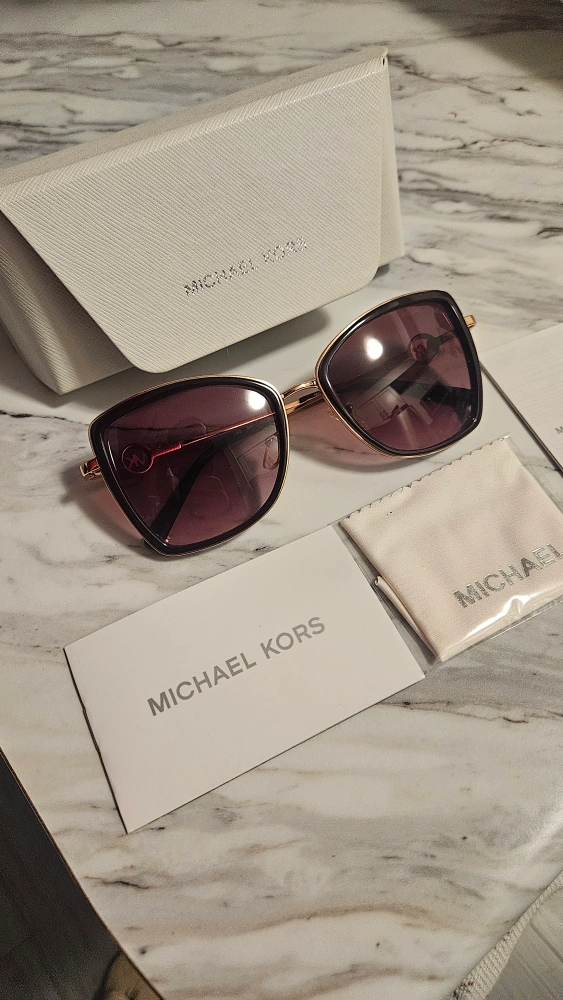 These stylish Michael Kors sunglasses are in great condition! The MK1067B Corsica model features a gold frame and pink lenses. Comes with the original case and cleaning cloth!