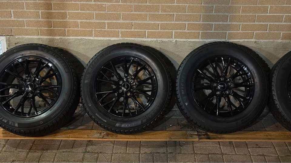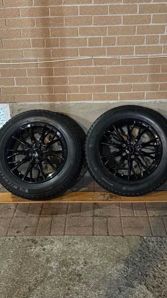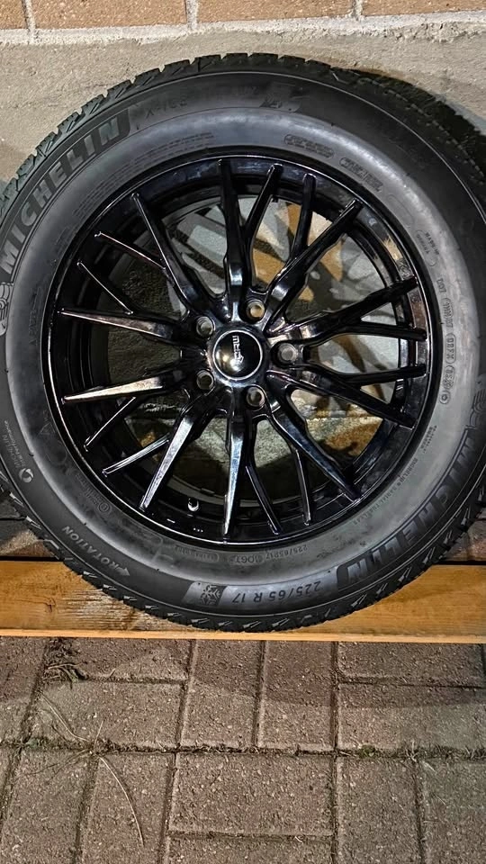 225/65R17 Michelin X ice snow SUV winter tires used like new in mint condition with black glossy crew rims that were under Toyota RAV4