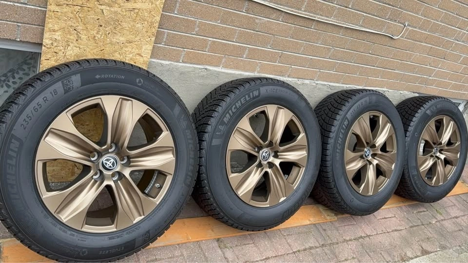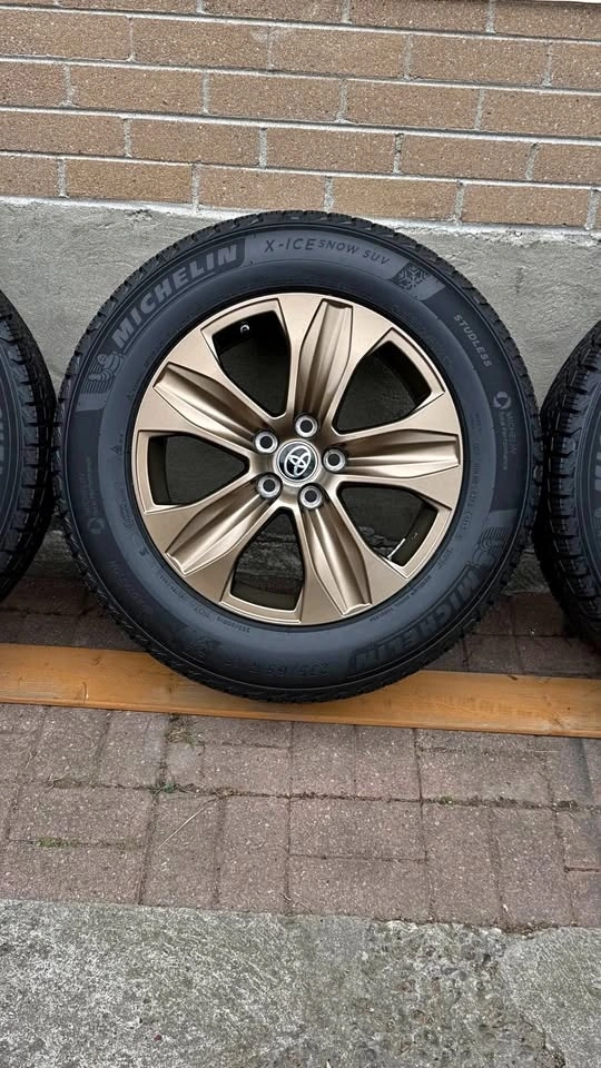 235/65R18 brand new Michelin X ice winter Tires with original Toyota Highlander rims, bronze, coloured edition. These rims are rare as they're meant for off-road and very expensive as well in retail. Perfect if you have a highlander. Bolt pattern 5X114.3. Can fit other Japanese vehicles as well like Lexus. Pick up Scarborough