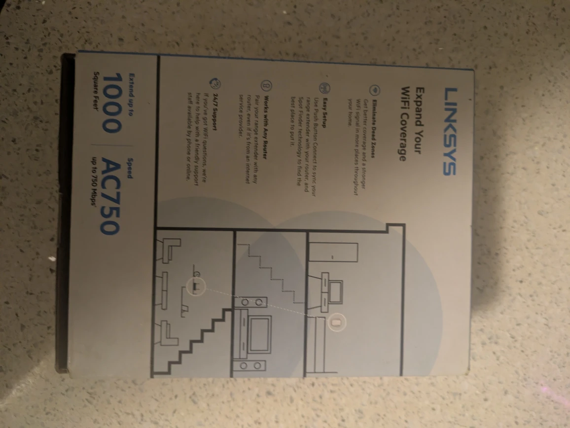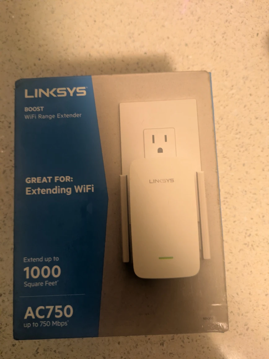 I'm selling a new Linksys AC750 Boost WiFi Range Extender! It's great for extending your WiFi range up to 1000 square feet. It supports speeds up to 750 Mbps. It eliminates dead zones and expands your WiFi coverage. Box is included!
