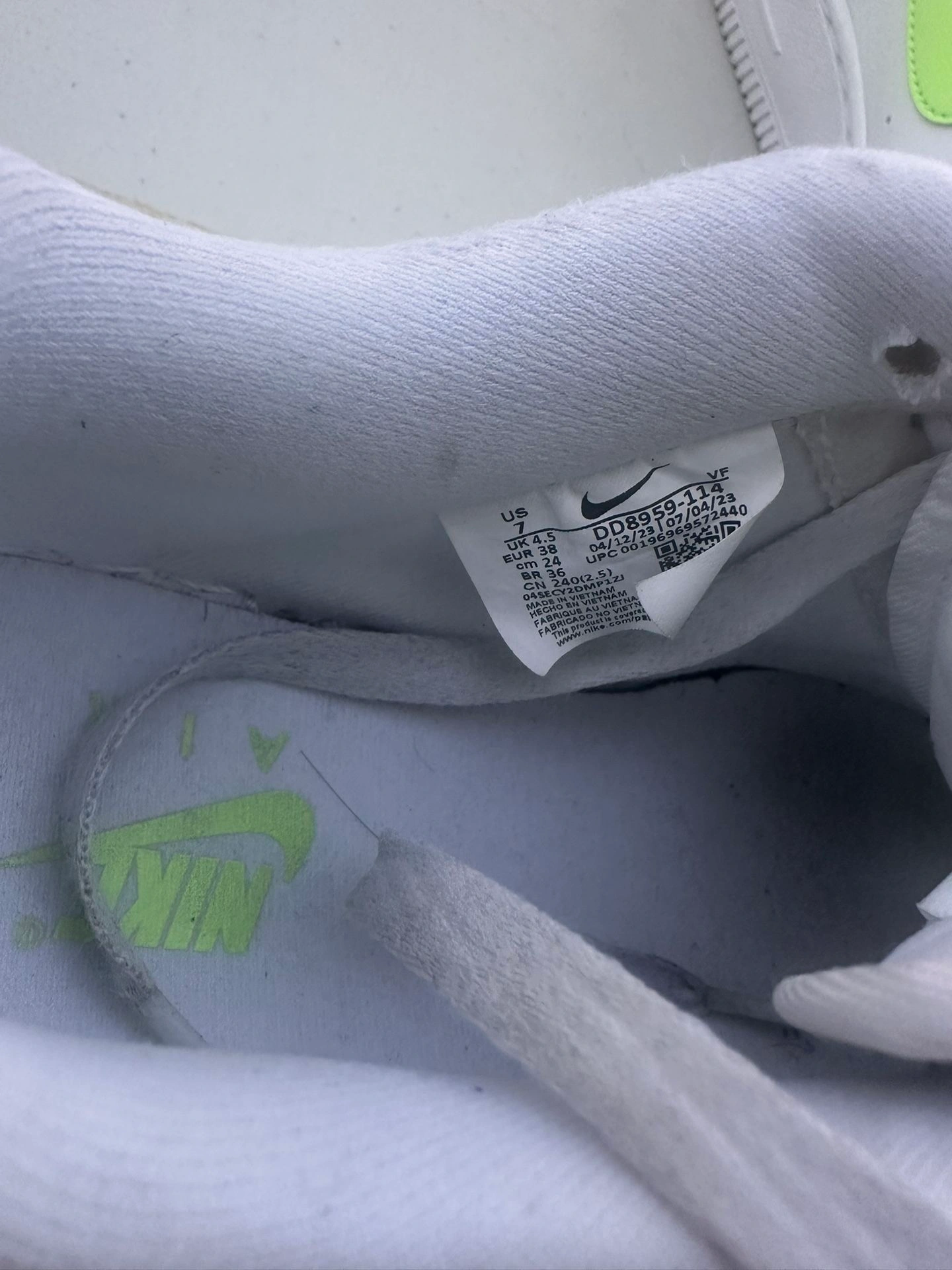 Buy & SellNeon and white Air Force 1 like new size 7 boysNeon and white Air Force 1 like new size 7 boys$40Neon and white Air Force 1 like new without box. Excellent condition size 7 boys.WHERE TO MEETCheck LocationView MapSELLERverifiedFlipVilleValley Stream620 reviews0 chats·0 favorites·5 viewsSEND CHAT TO SELLERHi FlipVille! I’m interested in your listing.Hi FlipVille! I’m interested in your listing.Get the Karrot app to chatSign In to chat