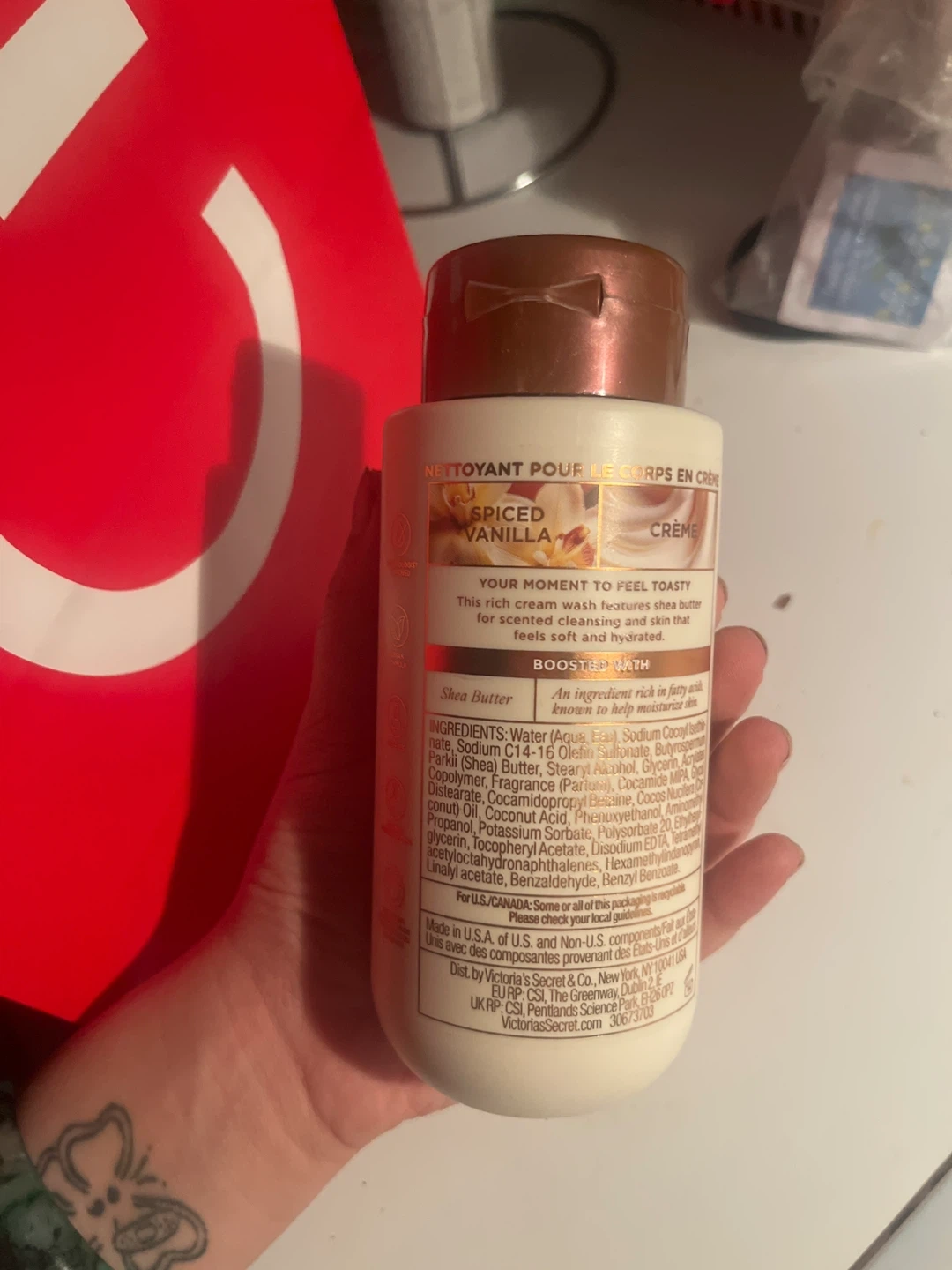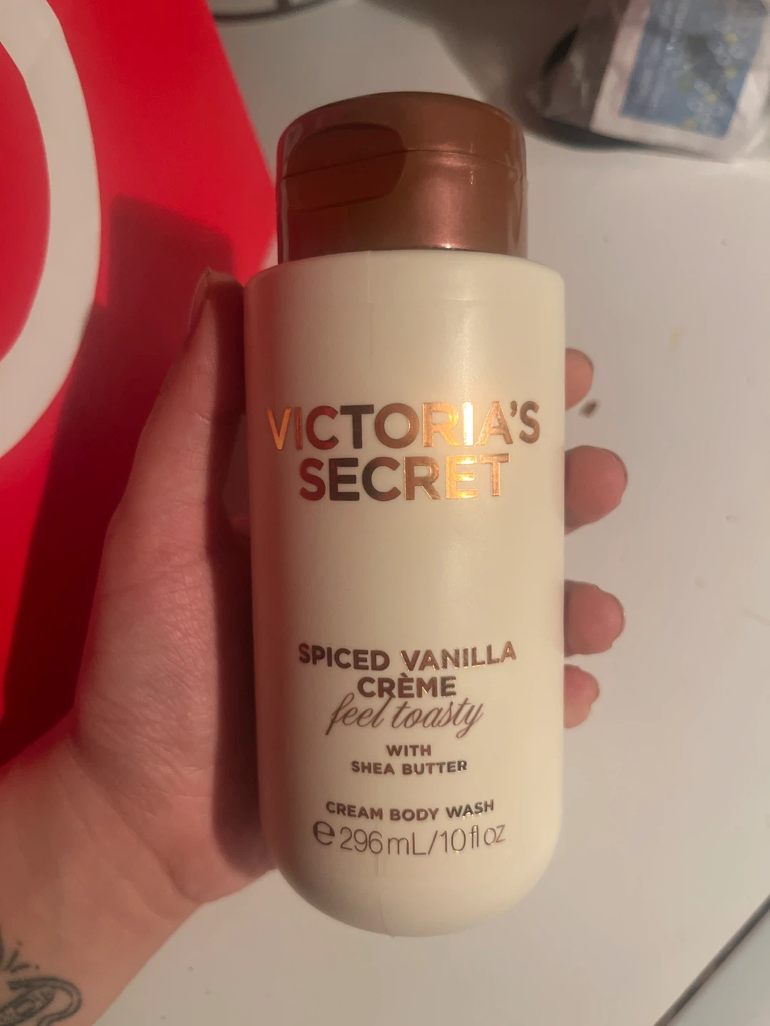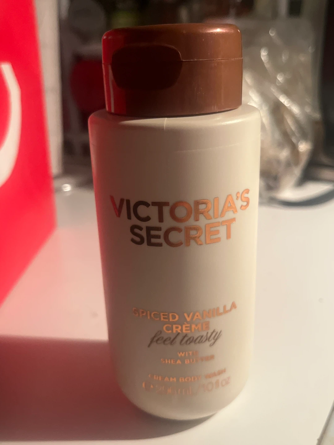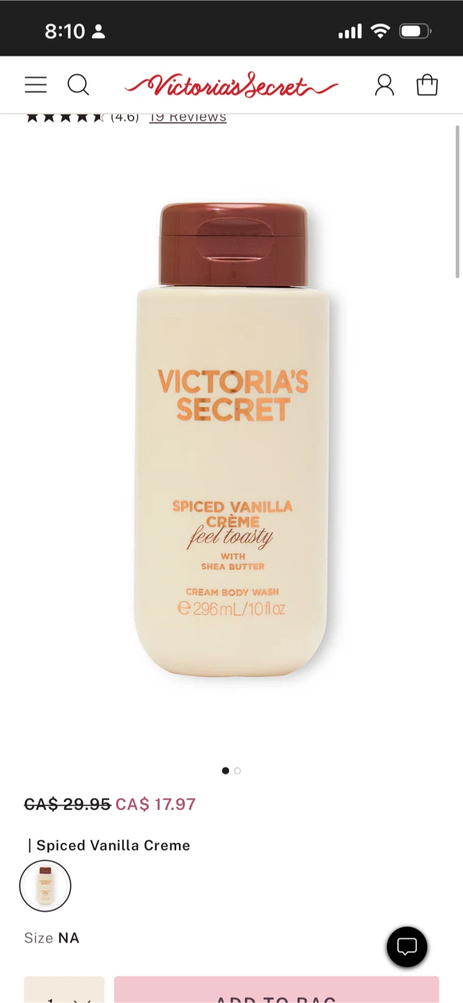 Selling a Victoria's Secret Spiced Vanilla Creme cream body wash. It's a 296 mL/10 fl oz bottle. A great way to feel toasty with shea butter!