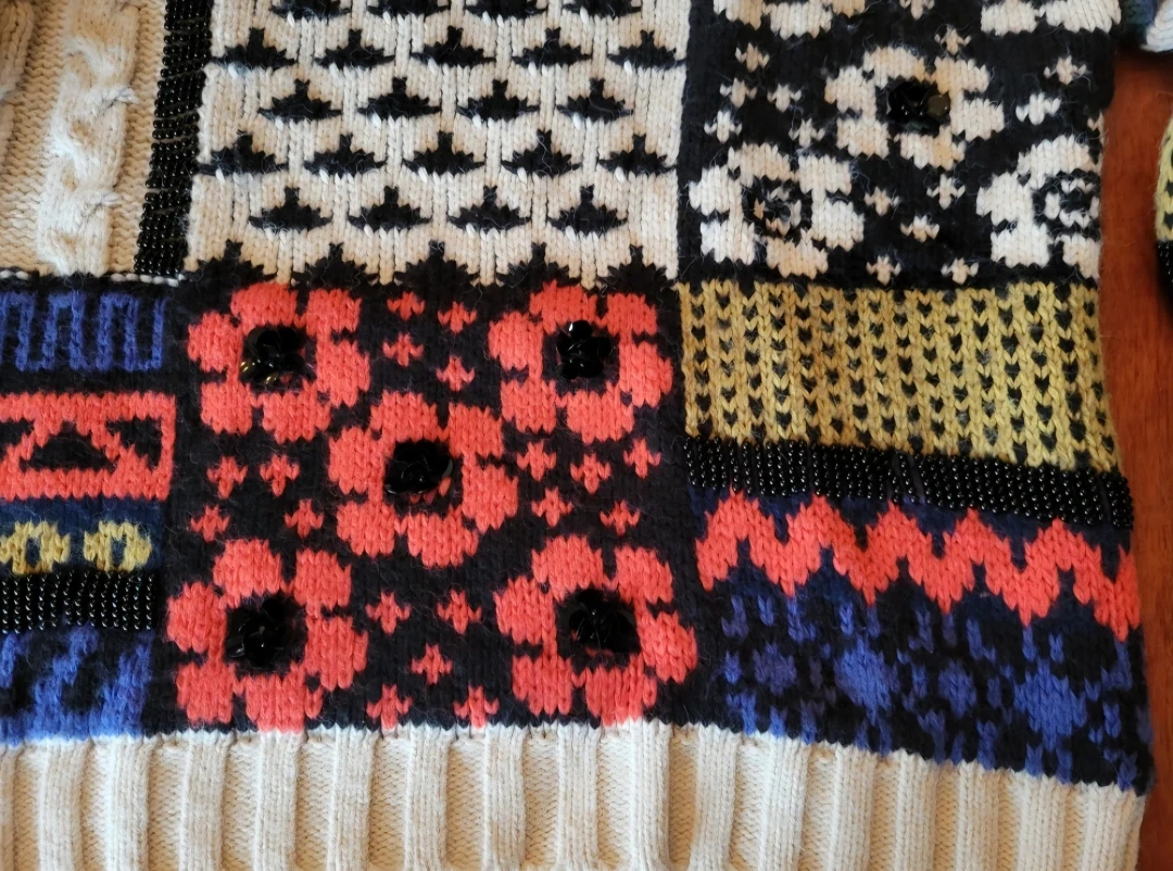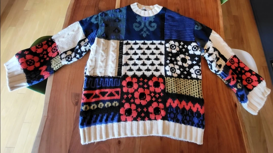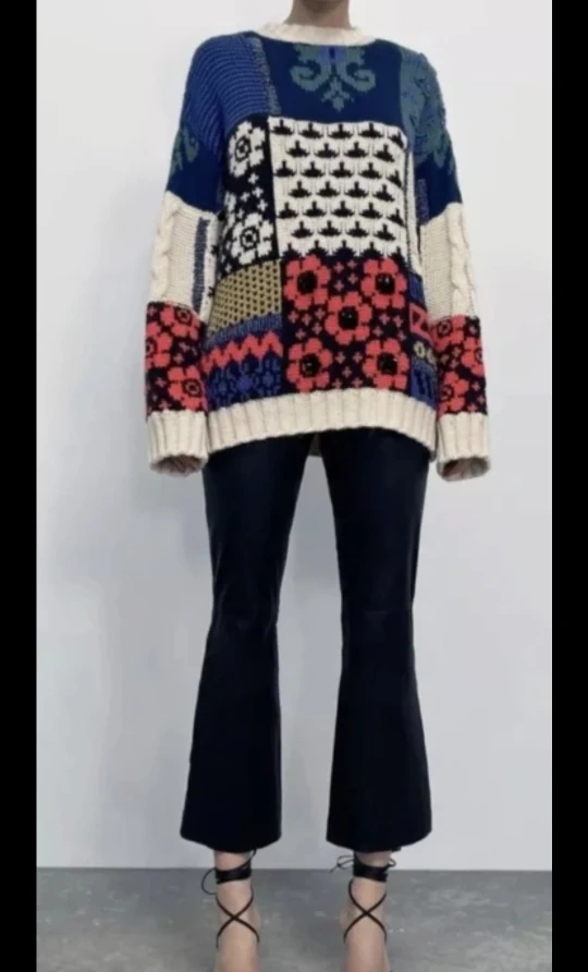This is the Limited Edition Zara Multicolour Patchwork Wool Blend Beaded Sweater
