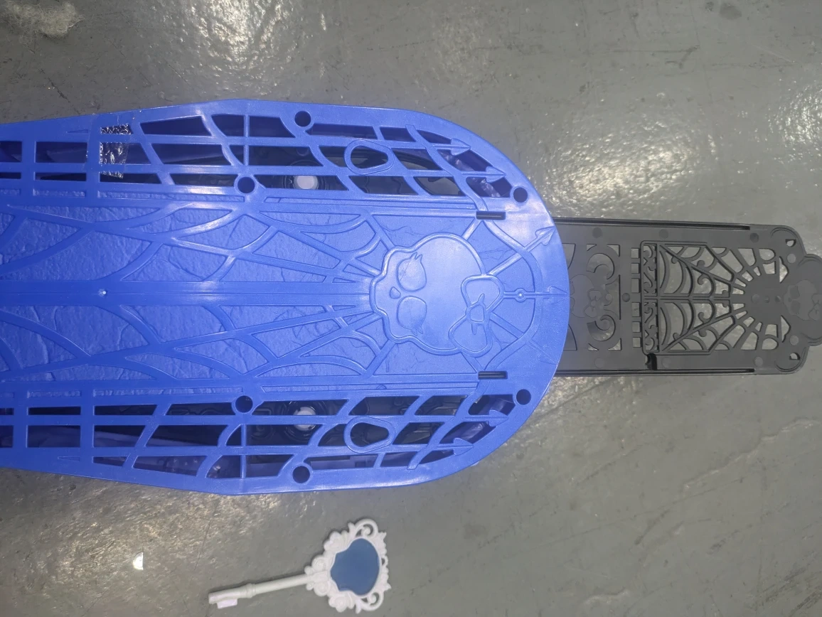 Selling a Monster High coffin bed doll furniture set. It appears to be in good condition and comes with a small mirror accessory. Perfect for any Monster High fan!
