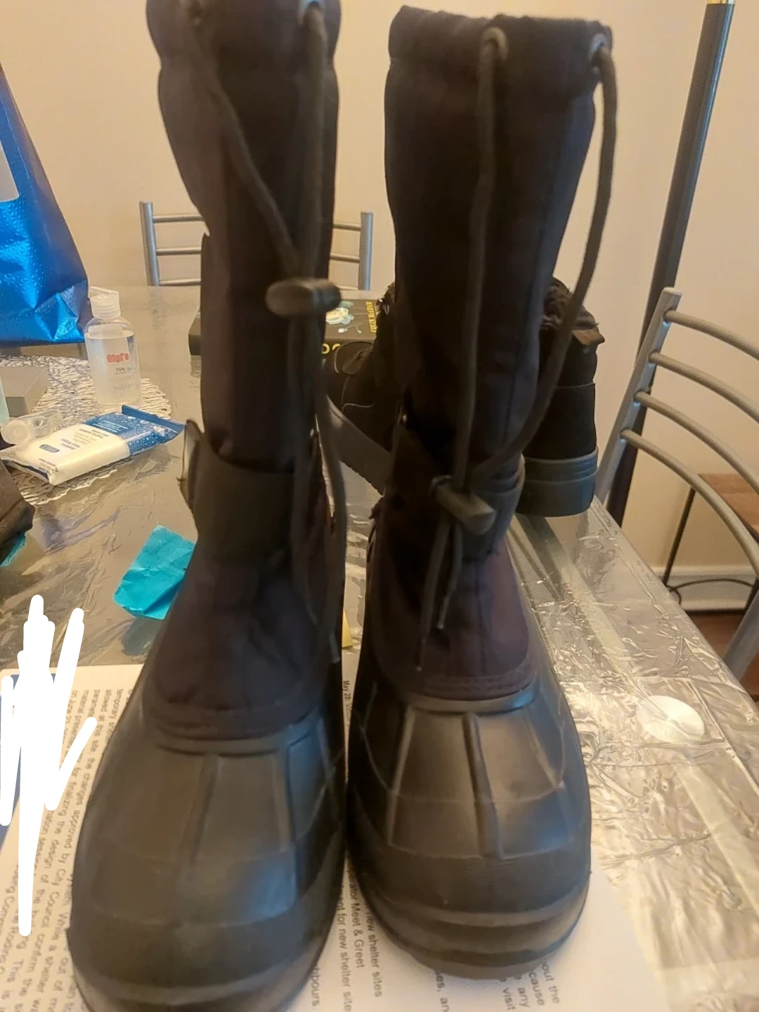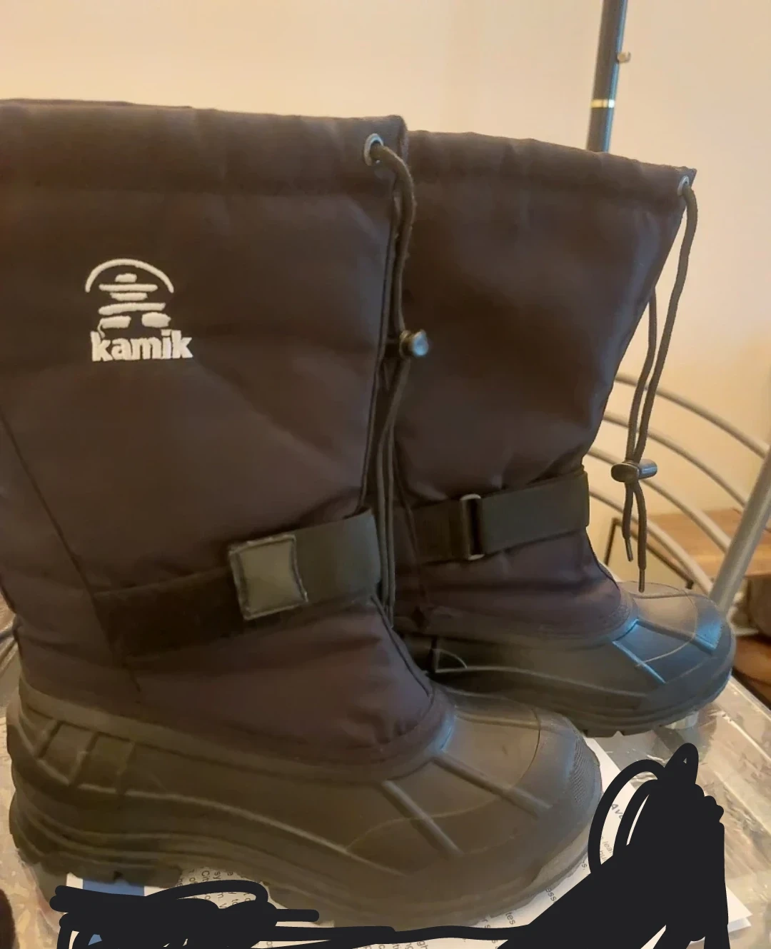 Here are some Kamik winter boots! They're great for keeping your feet warm and dry during the cold months. They show some signs of wear but are still in good condition for the winter season