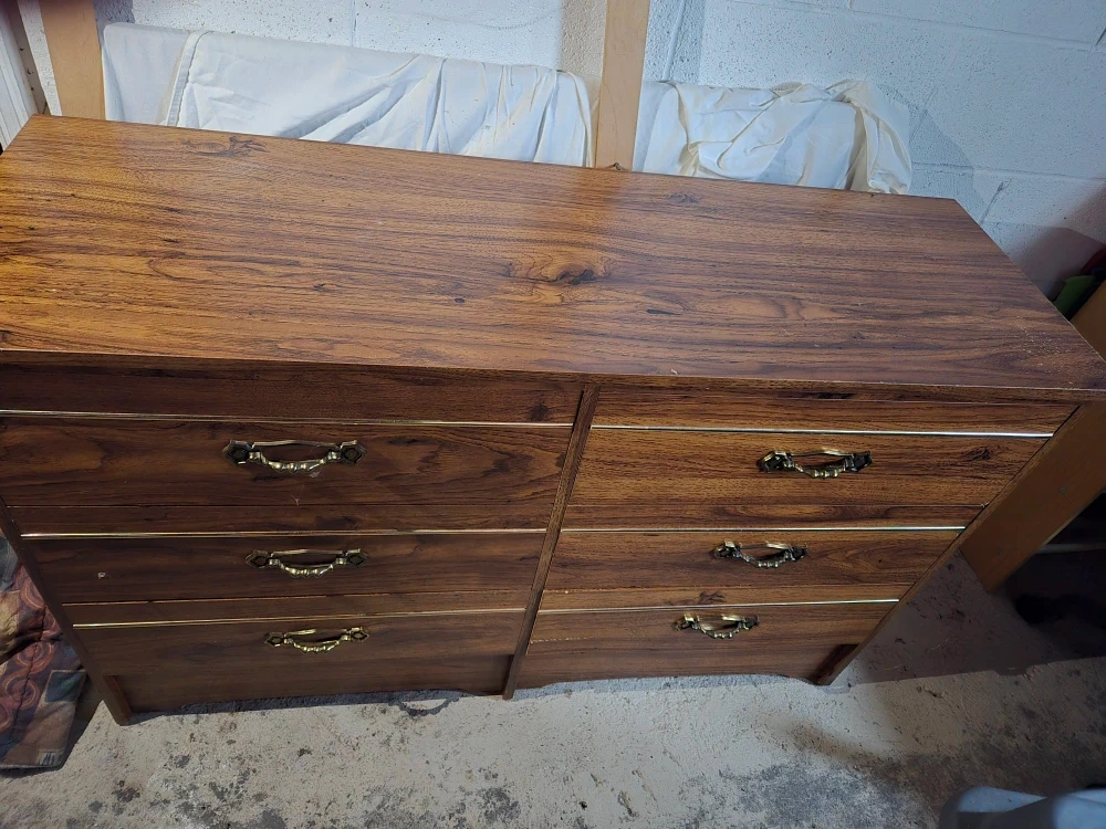 Selling a wood dresser with a matching mirror. It features a classic design with multiple drawers for ample storage. The dresser and mirror are in good condition, ready to add a touch of elegance to your bedroom! Delivery available but extra