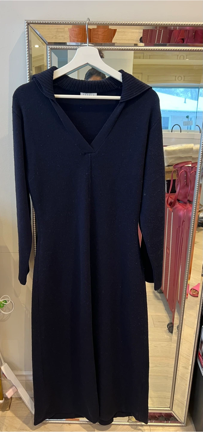 Selling a Sandro Paris knit dress in a beautiful navy colour. The dress is a size 38. It's in great condition and ready for a new wardrobe!