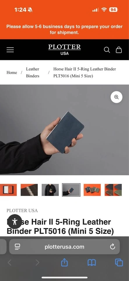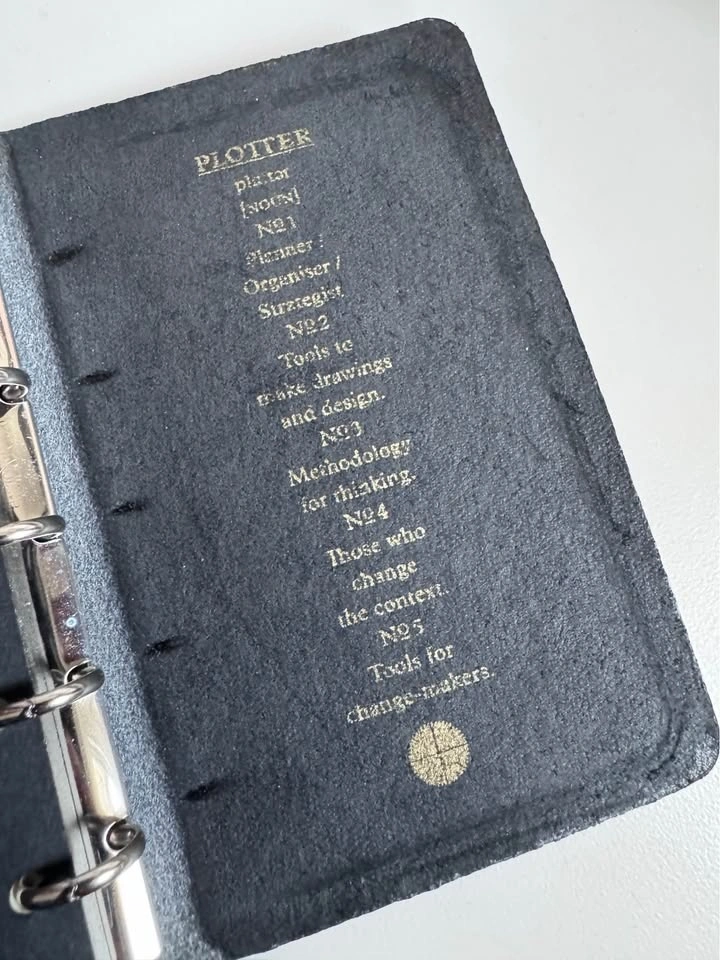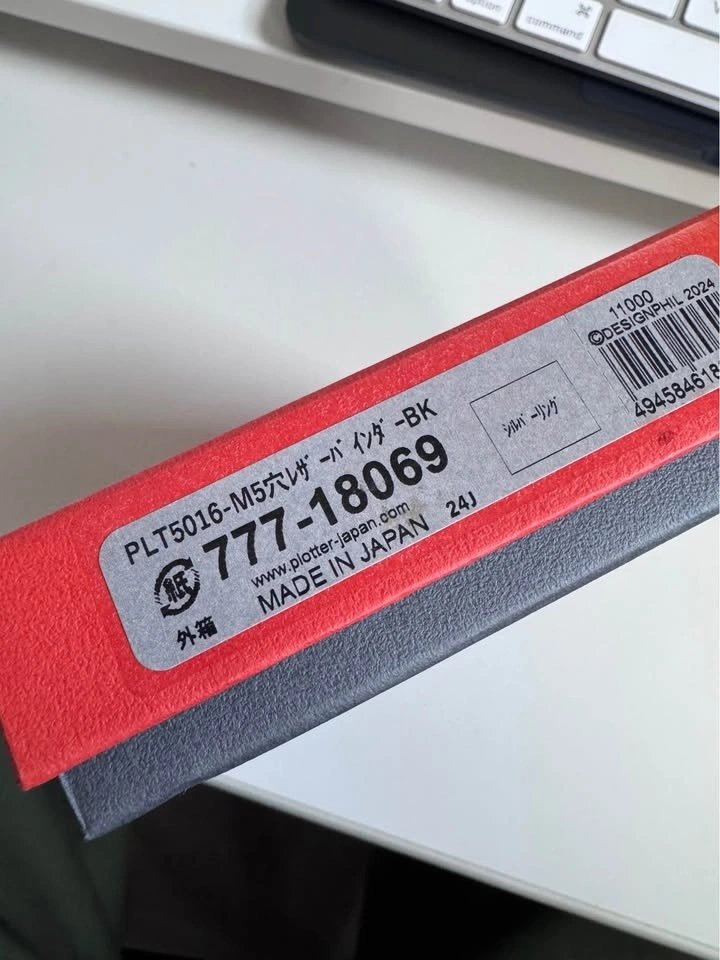 Note: The backplate is made of brass and plated with matte black color. Plating may come off due to friction and will exhibit the natural oxidation and discoloration of the brass material. Please enjoy the natural aging of the brass characteristic alongside the leather. We recommend inserting no more than 80 pages of PLOTTER original DP refill paper to ensure the longevity and functionality of the hardware.